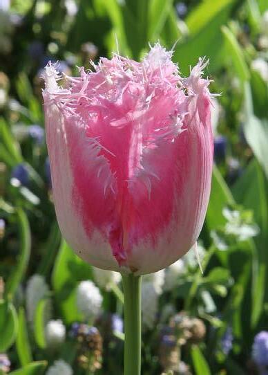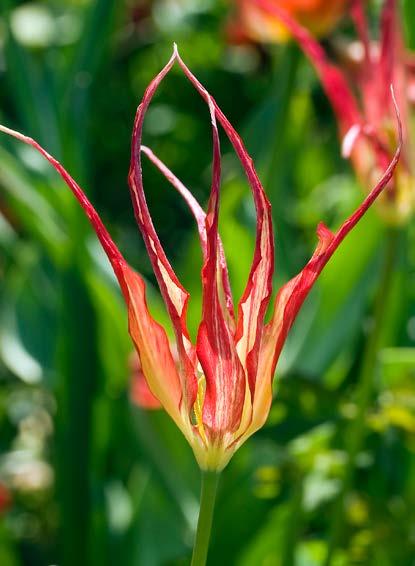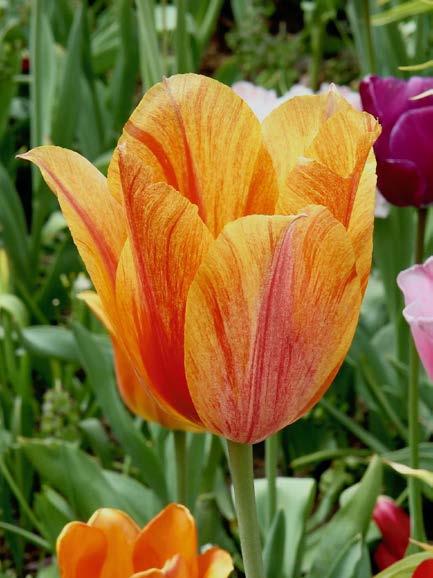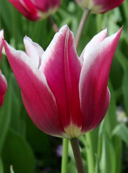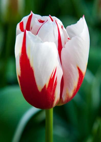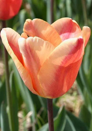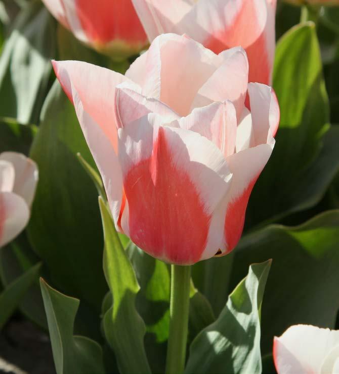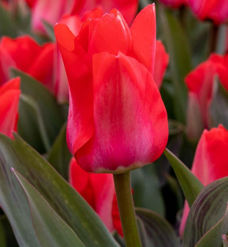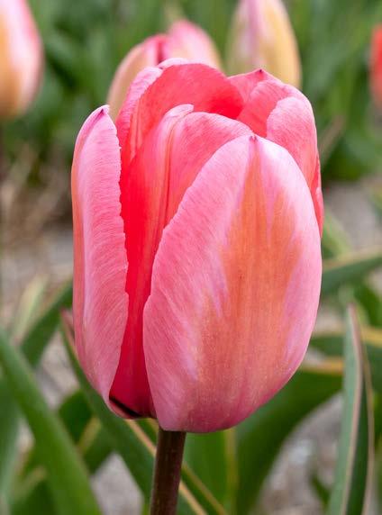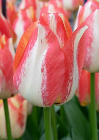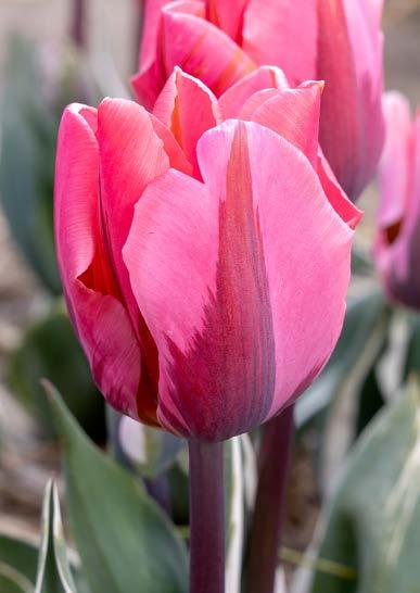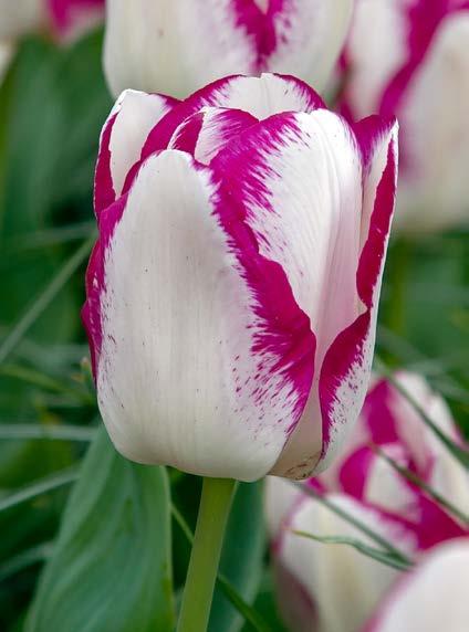 Een stijlvolle tulp met een uitgesproken tweekleurig effect.