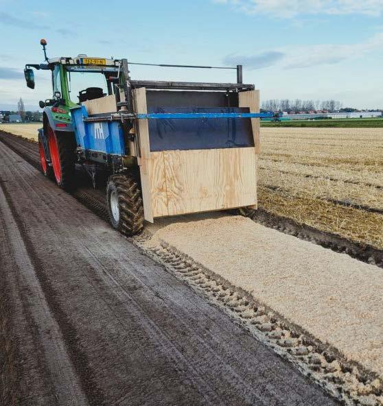 Het aanbrengen van houtvezel als alternatief voor chemische onkruidbestrijding.