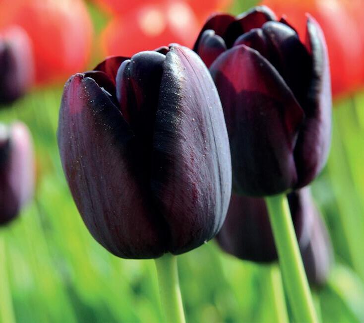 Ideal for creating contrast in borders. Combine with lighter tulips or perennials to add depth to planting schemes.