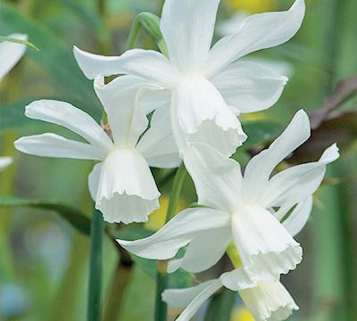 Sluit het narcissenseizoen af. Combineert mooi met vaste planten die juist in mei het stokje overnemen.