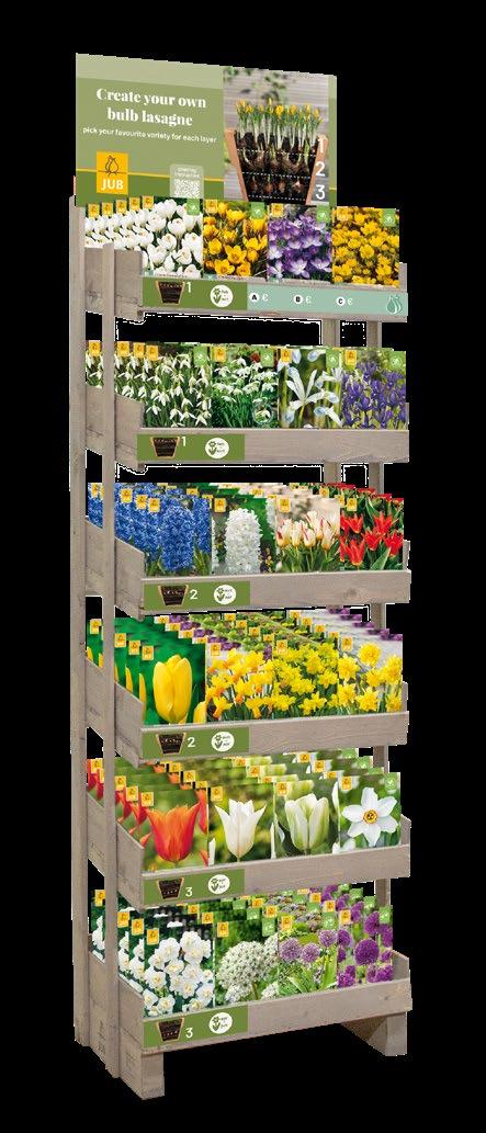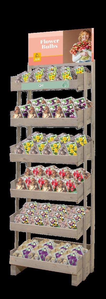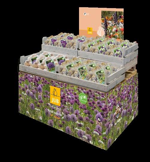 With JUB, you benefit from strong margins, well-crafted promotional concepts, and striking packaging and displays that instantly enhance impulse sales. Our inspiring in-store communication and 100% flowering guarantee offer added assurance. You can also rely on late-season stock availability, fast restocking, personal support, and exclusive landscape combinations that set your assortment apart.
