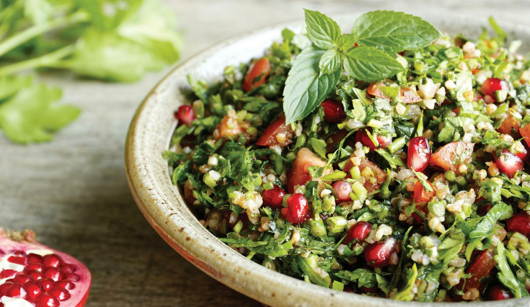 Dans un joli plat de présentation, déposez le bourghoul avec le reste des ingrédients. Mélangez et assaisonnez.