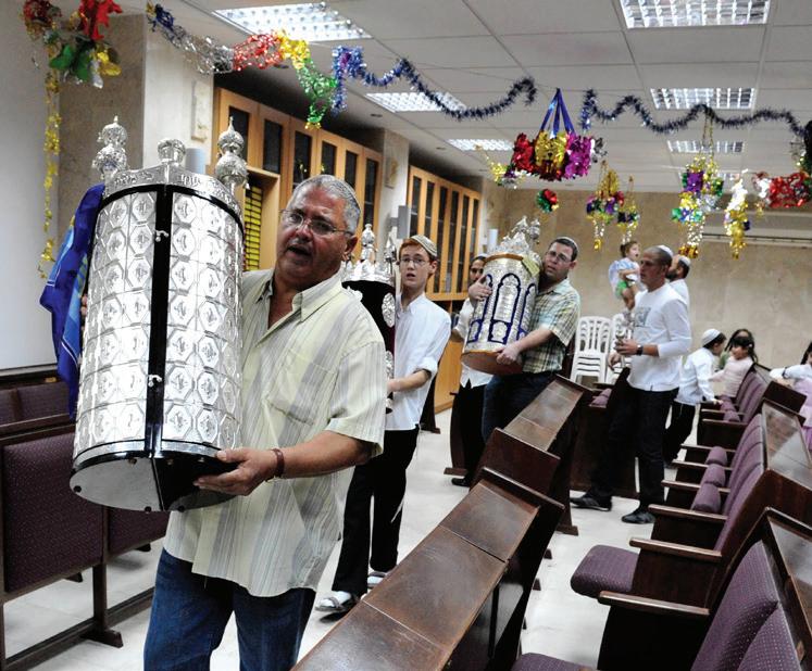 On célèbre la fête de Sim’hat Torah à la synagogue, selon les mêmes coutumes qu’en Israël.