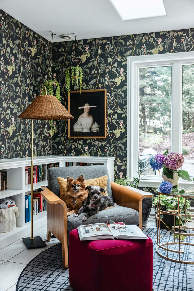 threads through the rest of the main floor, enveloping the room in bold wallpaper, deep tones, and of course a full coat of Twilight Zone on every surface.