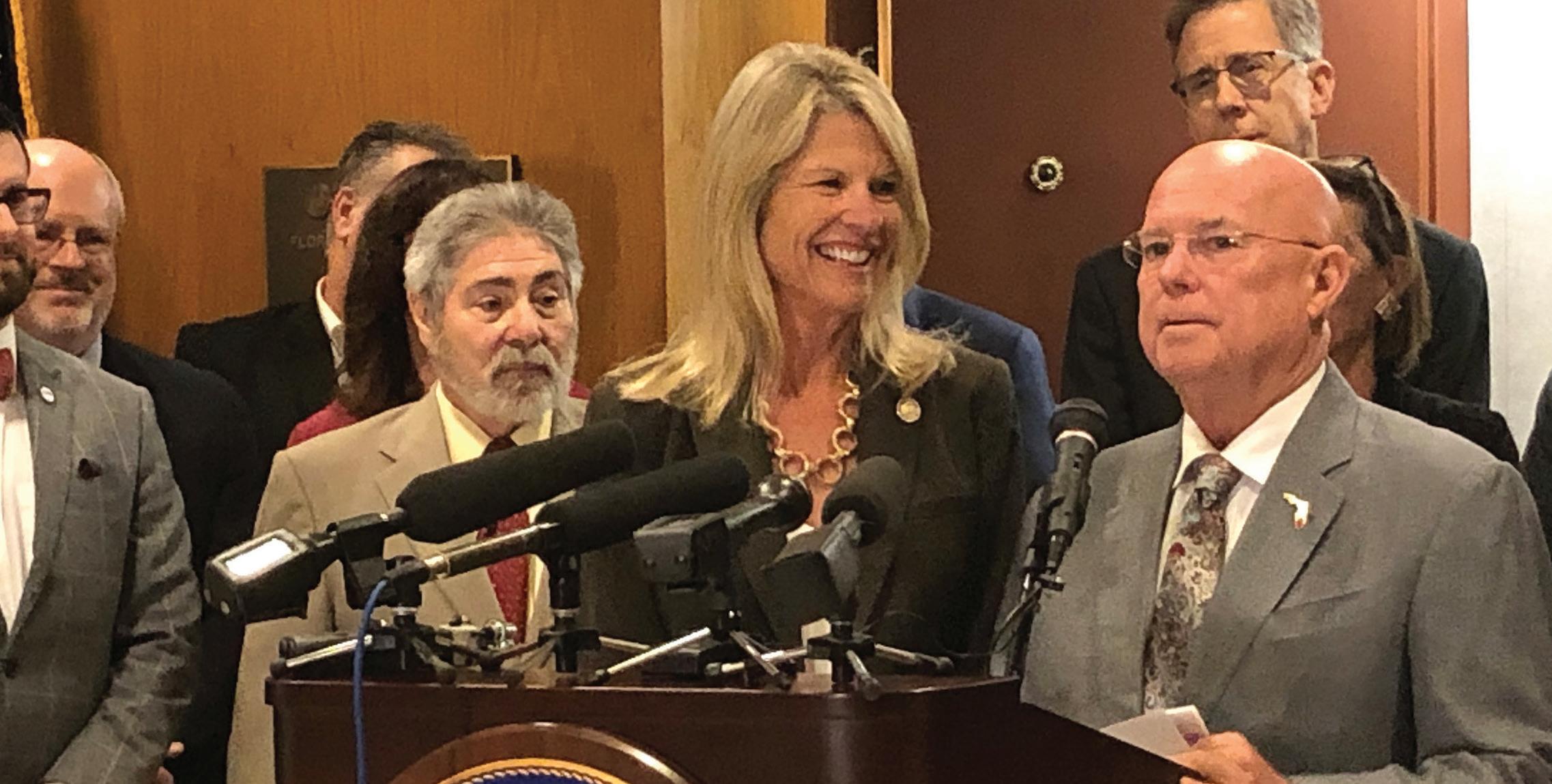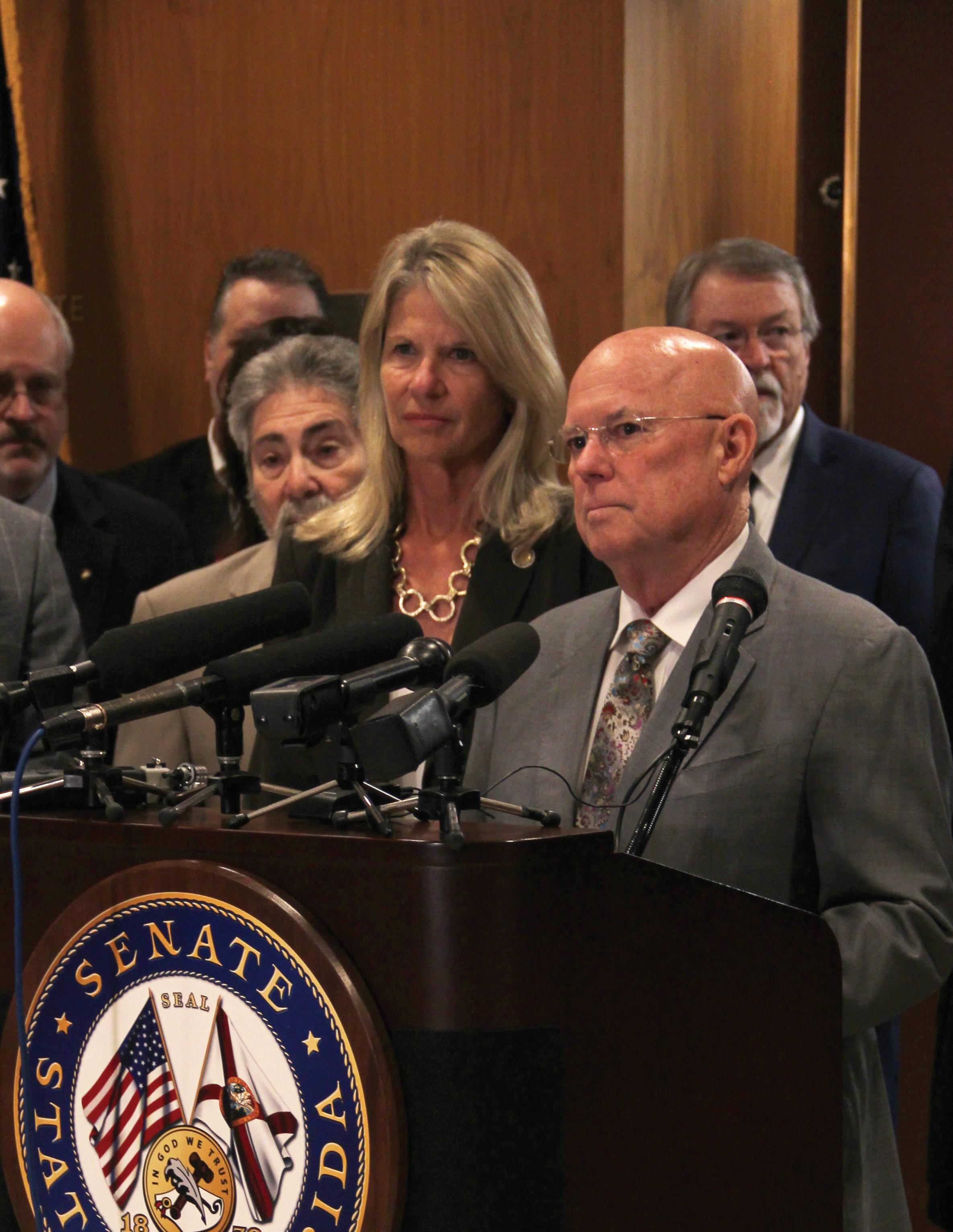 Following the opening of the press conference by Ross, Senator Mayfield (Republican from Melbourne) and Representative Sam Killebrew (Republican from Winter Haven) joined in calling for a stop to the sweeps of the housing trust funds by explaining their bipartisan bills, SB 306 and HB 381 intended to stop the sweeps.