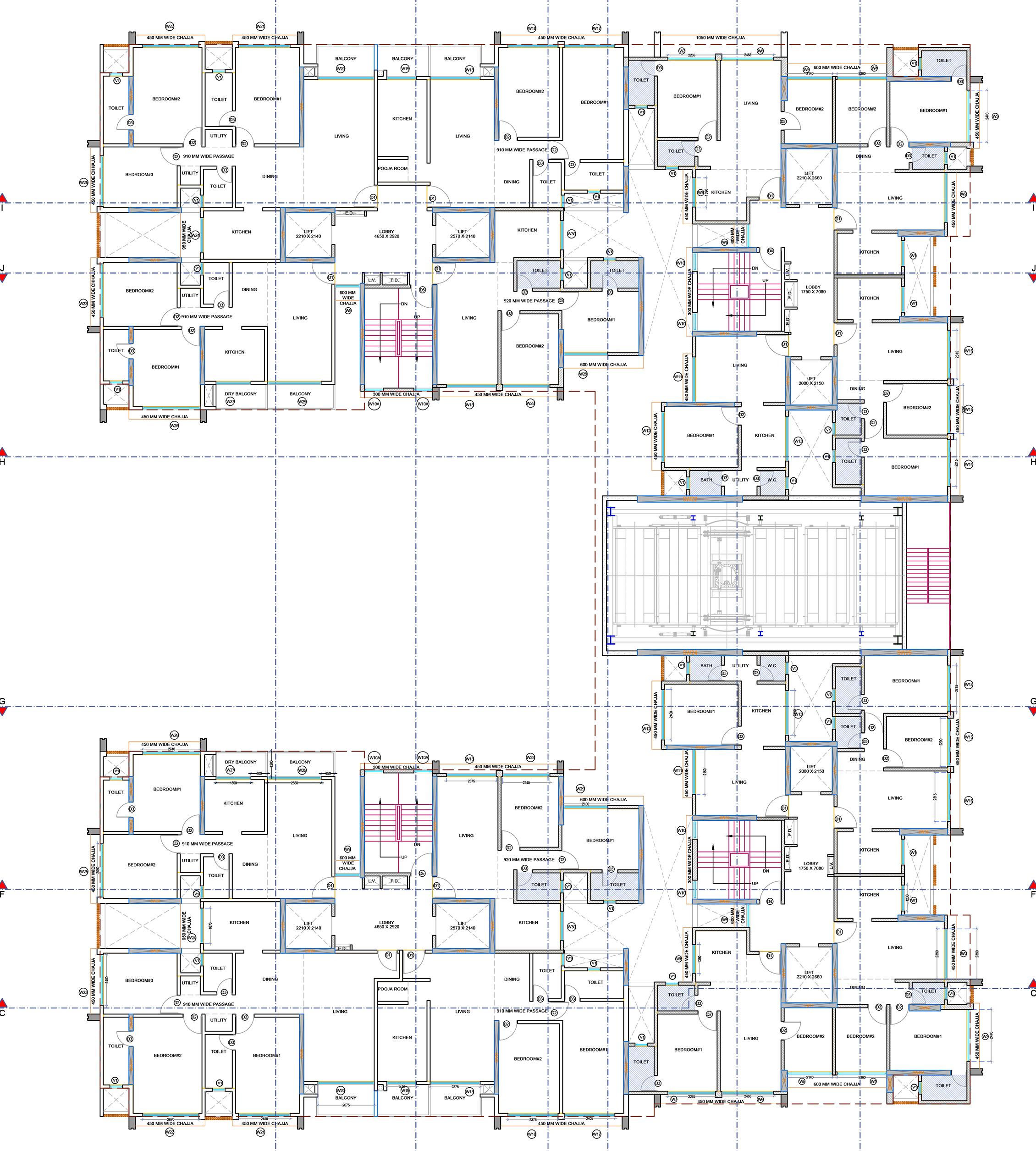 Focused on technical clarity, this section showcases detailed working drawings, centerline planning, and sectional coordination for accurate handover.