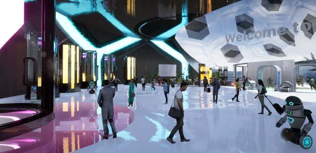 • Lobby/ Teleportation Station is central hub for public that allows instant transporting objects or individuals between the Youtopia in 2020 and future world 2070. This station has a visitor center, lobby, cafe as well.