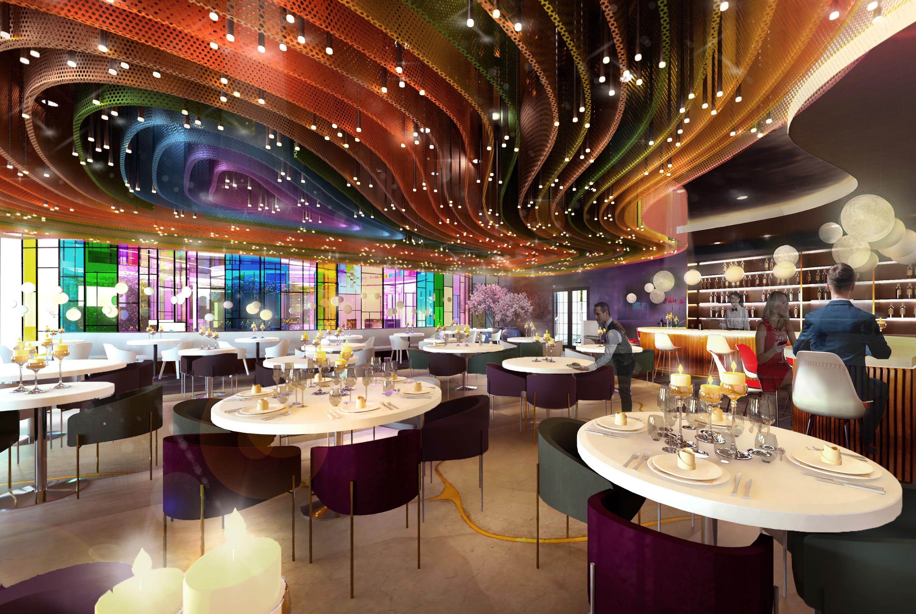 The concept focuses on bio-philic design and open spaces, acknowledging humanity's connection to nature's healing power. A key feature is the indoor garden, designed with a glass dome and cur ved pathways to evoke a natural environment and promote a sense of rejuvenation. Sustainable, warm-toned materials dominate the furniture selection.