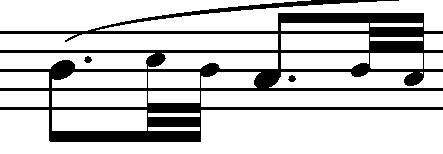 • A dashed line between two notes indicates a portamento (a subtle slide).