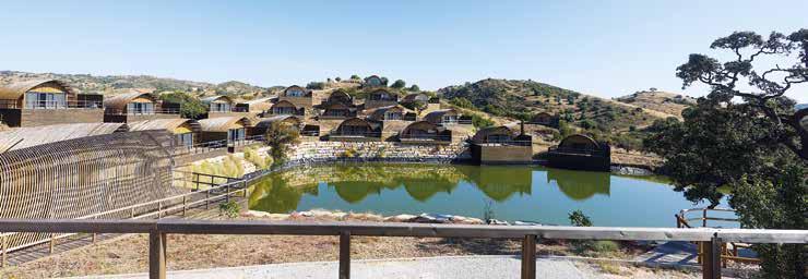 padel and pickleball courts, a breathtakingly beautiful elevated yoga studio, plus a world-class spa, the retreat takes full advantage of the site’s landscape. With a unique, purpose-built beach that leads onto Portugal’s largest natural swimming lake, a 100-seater Dolby®