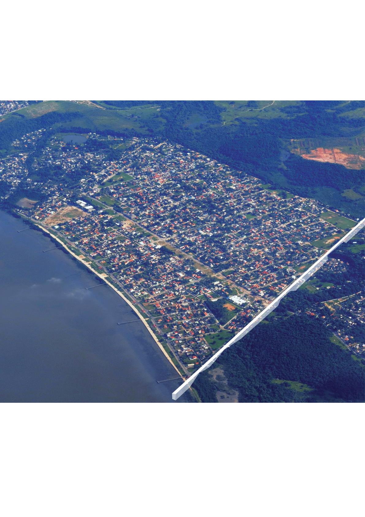 Stratégie territoriale. Après avoir étudié le vaste territoire de Santa Cruz, nous avons découvert une figure à très grande échelle dans le paysage : une ligne de 12km, frontière entre différents morceaux de ville ou de nature qui semblaient n’entretenir aucune relation entre eux. Nous avons choisi d’implanter le projet le long de cette ligne, afin de tirer parti de cette condition frontalière et limitrophe. Nous avons dessiné des bâtiments linéaires de 20m de large sur des portions spécifiques de cette ligne.
