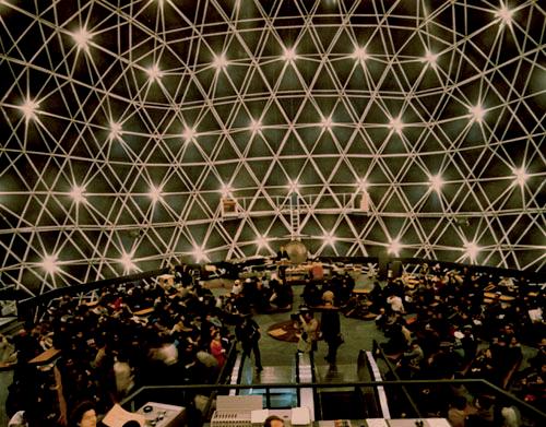 Spherical Concert Hall : le Pavillon allemand du compositeur Karlheinz Stockhausen et de l’architecte Fritz Bornemann pour l’Exposition Universelle d’Ōsaka en 1970. 50 hauts-parleurs répartis sur toute la surface de la sphère permettent de spatialiser le son comme jamais auparavant. ©Stockhausen Foundation for Music.