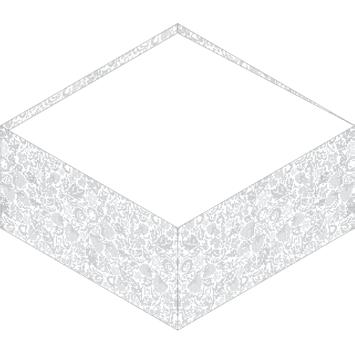 La construction devait ainsi avoir une identité forte, afin d’agir comme un signal ou une borne kilométrique, aisément reconnaissable par les voyageurs, tout en pouvant s’adapter et révéler les spécificités de chaque site, en termes de culture, de paysage ou de climat. Nous avons donc choisi l’acier Cor-Ten pour la façade car il a la particularité de vieillir de différentes façons en fonction des conditions climatiques : ainsi le kiosque, bien que toujours identique, aurait évolué différemment en fonction de son emplacement. De plus, ce matériau pouvant être perforé, nous avons réinterprété un motif traditionnel russe хохлома (Khokhloma) pour l’appliquer à la peau du kiosque. Quant au plan, il est constitué de deux entités distinctes :