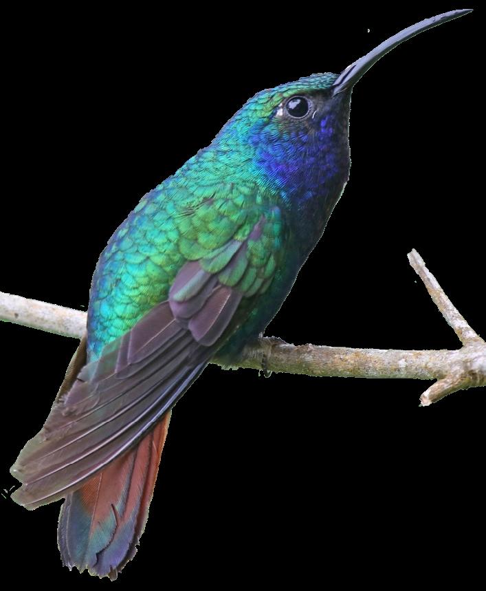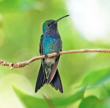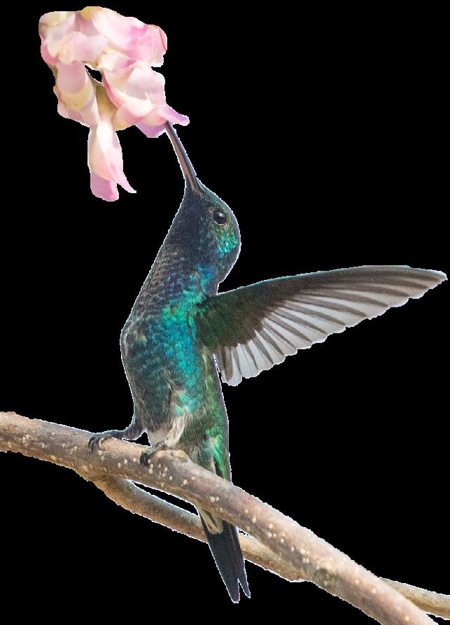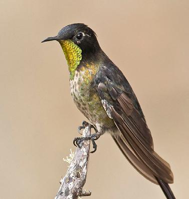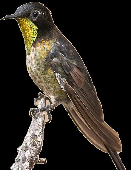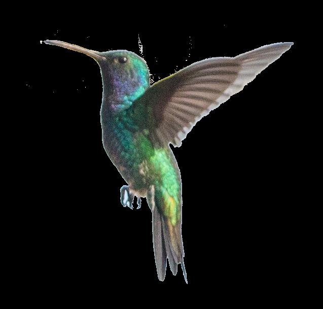de los distintos factores que afectan a cada ave, como la ali mentación, el lugar donde se encuentren, o el cortejo, como es el caso del Colibrí chivito, que presenta la característica del ba bero colorido solamente en los machos. Sin duda, no hay una sola forma de encasillar a los colores del plumaje de las aves del Caribe, ya que todas