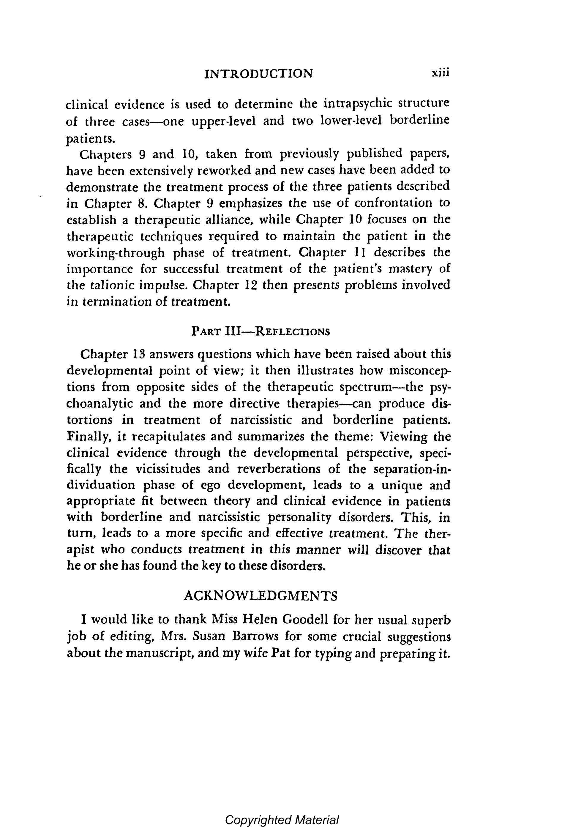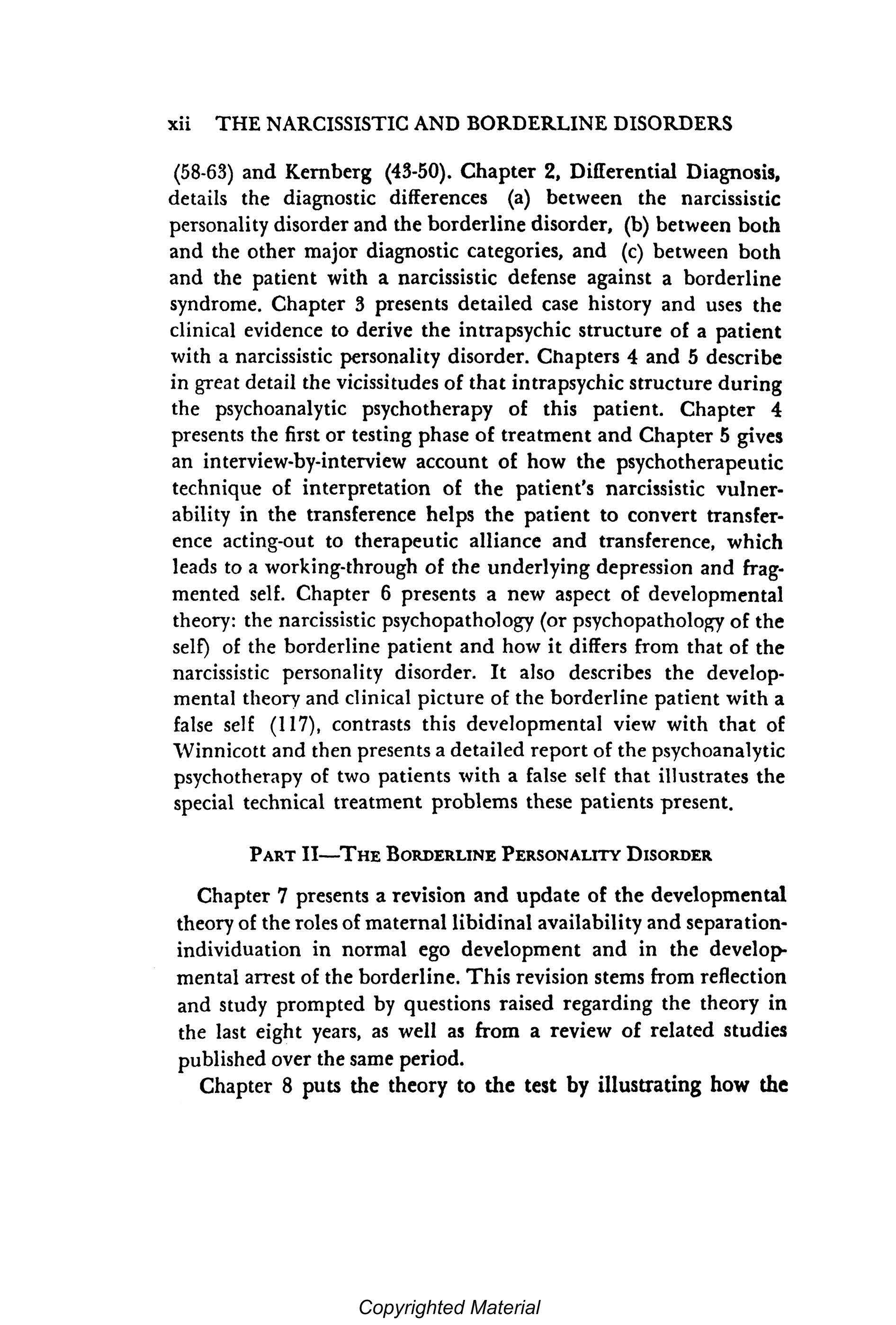 xii THE NARCISSISTIC AND BORDERLINE DISORDERS