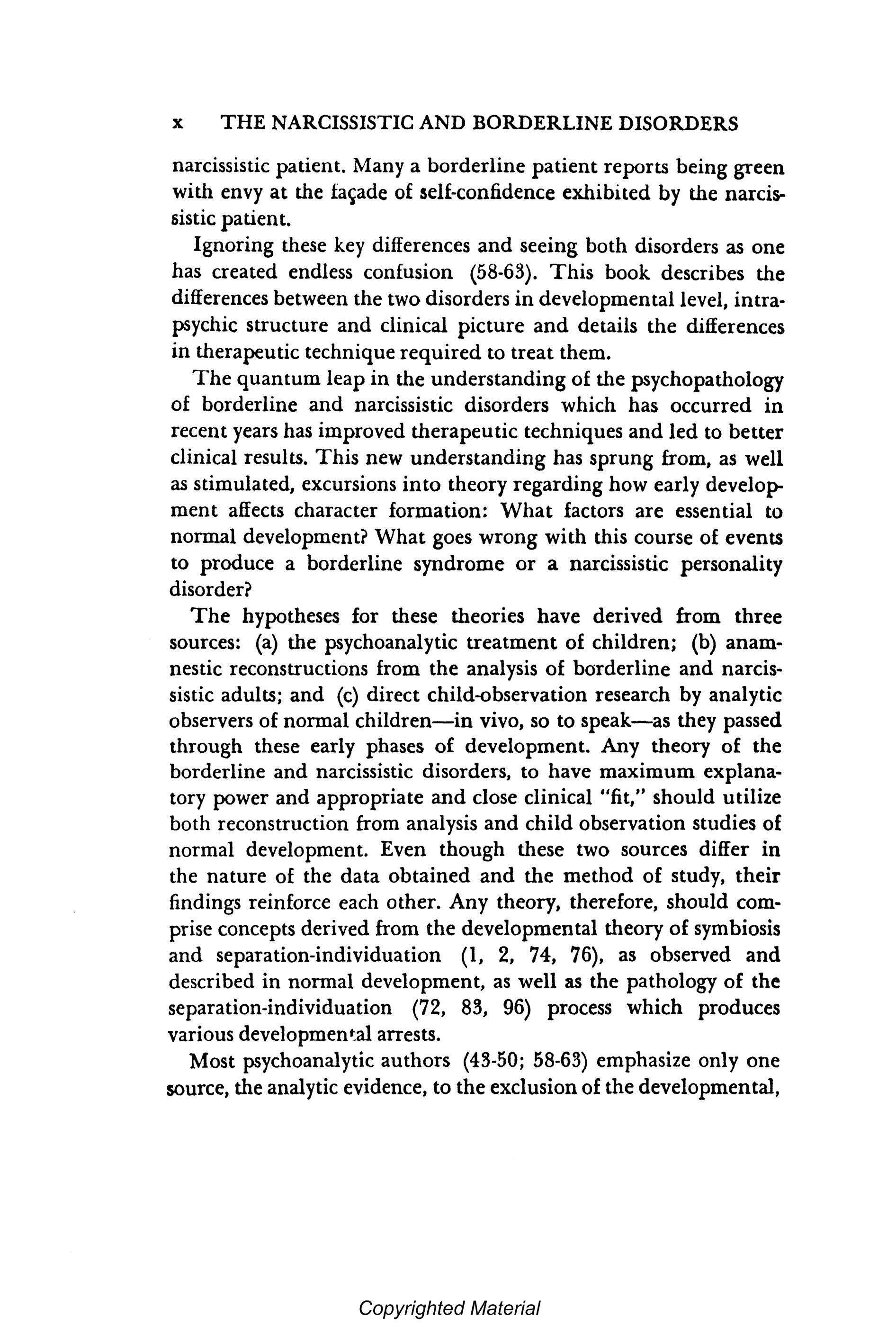 x THE NARCISSISTIC AND BORDERLINE DISORDERS