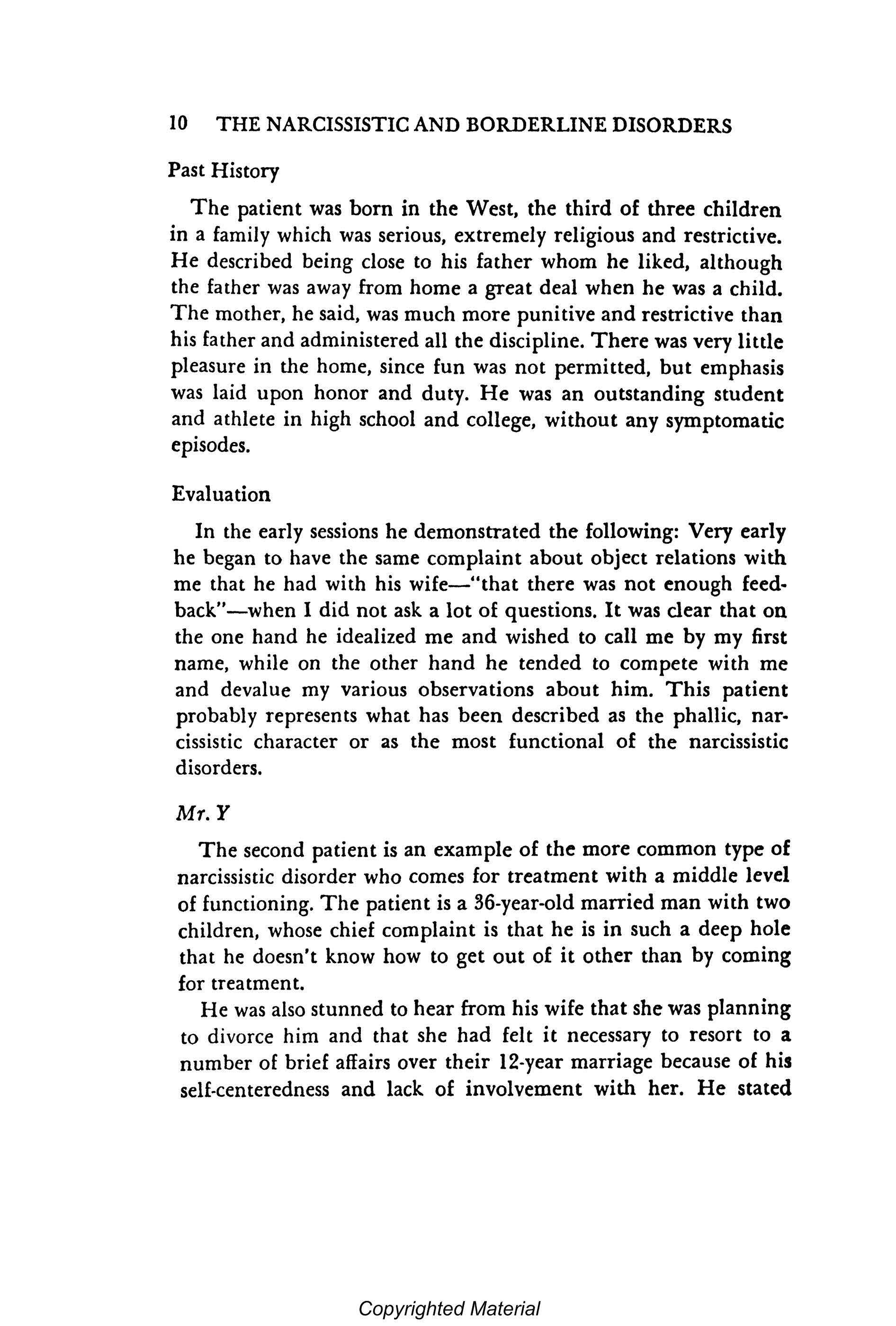 narcissistic patient. Many a borderline patient reports being green with envy at the of self-confidence exhibited by the narcissistic patient.