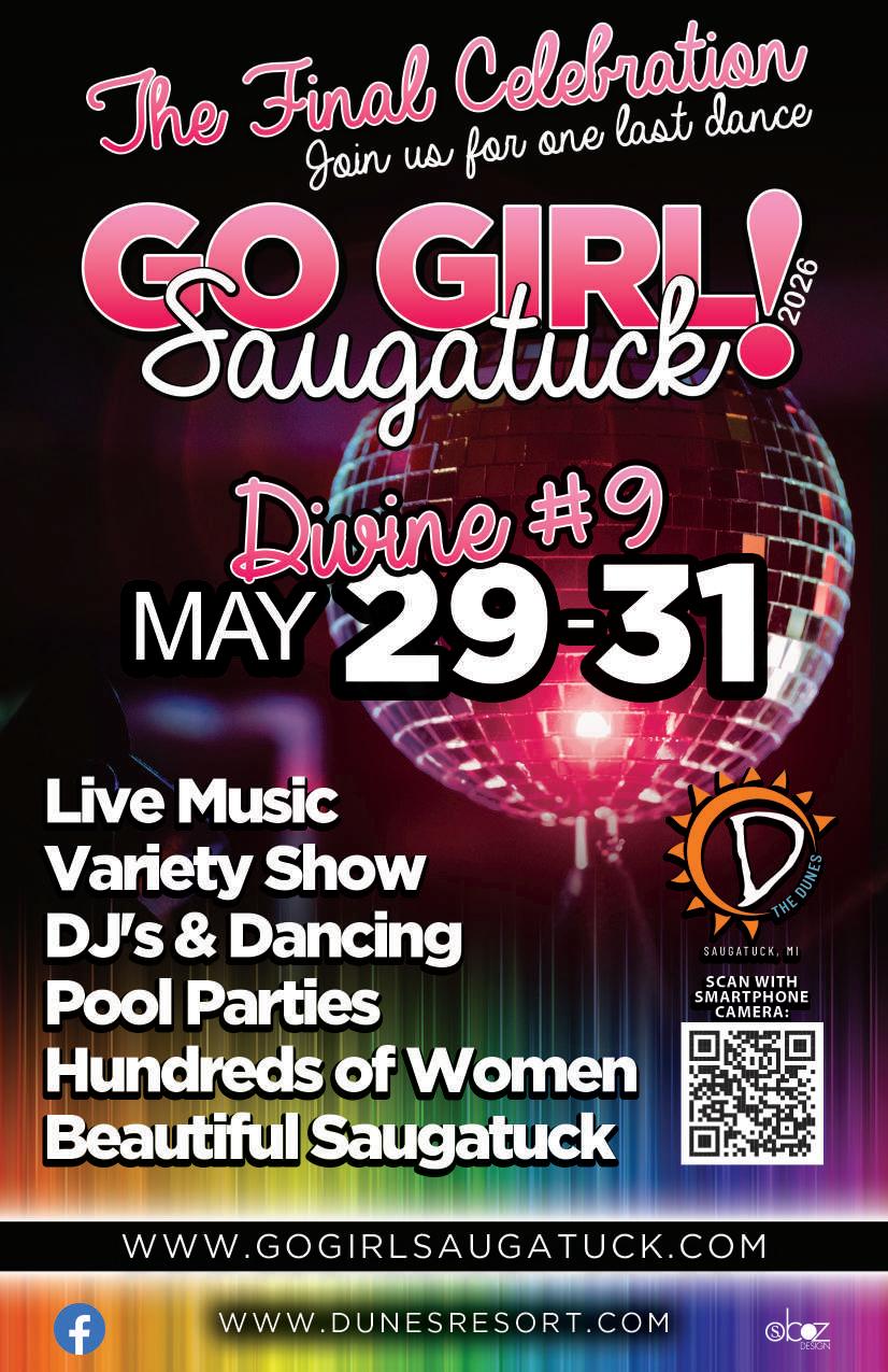 It’s 2026 and Go-Girl Saugatuck is ready to go out with a bang! We are all familiar with The Dunes, the Midwest’s largest outdoor gay resor t. But what if we told you that for one weekend in the, the Dunes transforms into the largest All Girls Par ty in the Midwest? We wanted to get the f ull scoop on this event, so we spoke with the brainchild of Go-Girl, Mimi Gonzalez, to hear f irsthand why this year’s event will be the biggest and best yet. “The idea came from The Dunes owner, Mike Jones,” said Mimi “At the time he was looking for a producer for a girls weekend,” And the rest is histor y. The f irst event in 2016 has expanded to a f ull blown Girls Weekend at the Dunes. From names like Melissa Ferrick, to groups like the Cinema Systers, Go-Girls has brought the hottest names and per formances in the Lesbian community to Saugatuck for this all-weekend par ty. Women from all over the Midwest come in for this event; from Detroit, to Grand Rapids, and from Indy to Ohio, the women who know, know what’s up. Past per formances have included f ire breathers, D js, Musical acts, and even a woman who can shoot sparks from her crotch! (don’t tr y that at home).