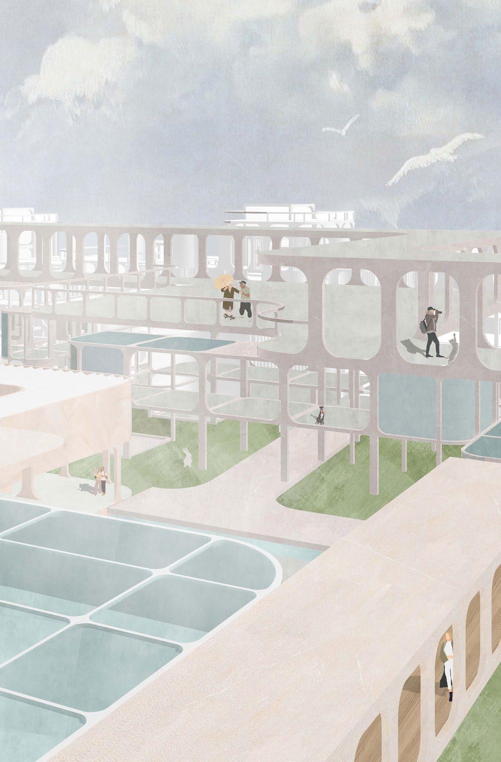 Restoration of biodiversity and providing employment for isolated communities Bridging communities and managing water pollution in urban environments Community outreach, education centre for technological developments and ecology Research into sustainablity and support for the traditional fishing industry Through the implementation of a repeatable modular system, this proposal aims to have the potential to connect the whole of the Penang Bay area and pro-vide an economic stimulation through environmental rehabilitation; improve-ment of living conditions by increasing water quality and connecting Penang’s traditional industries with new technological advancememnts.