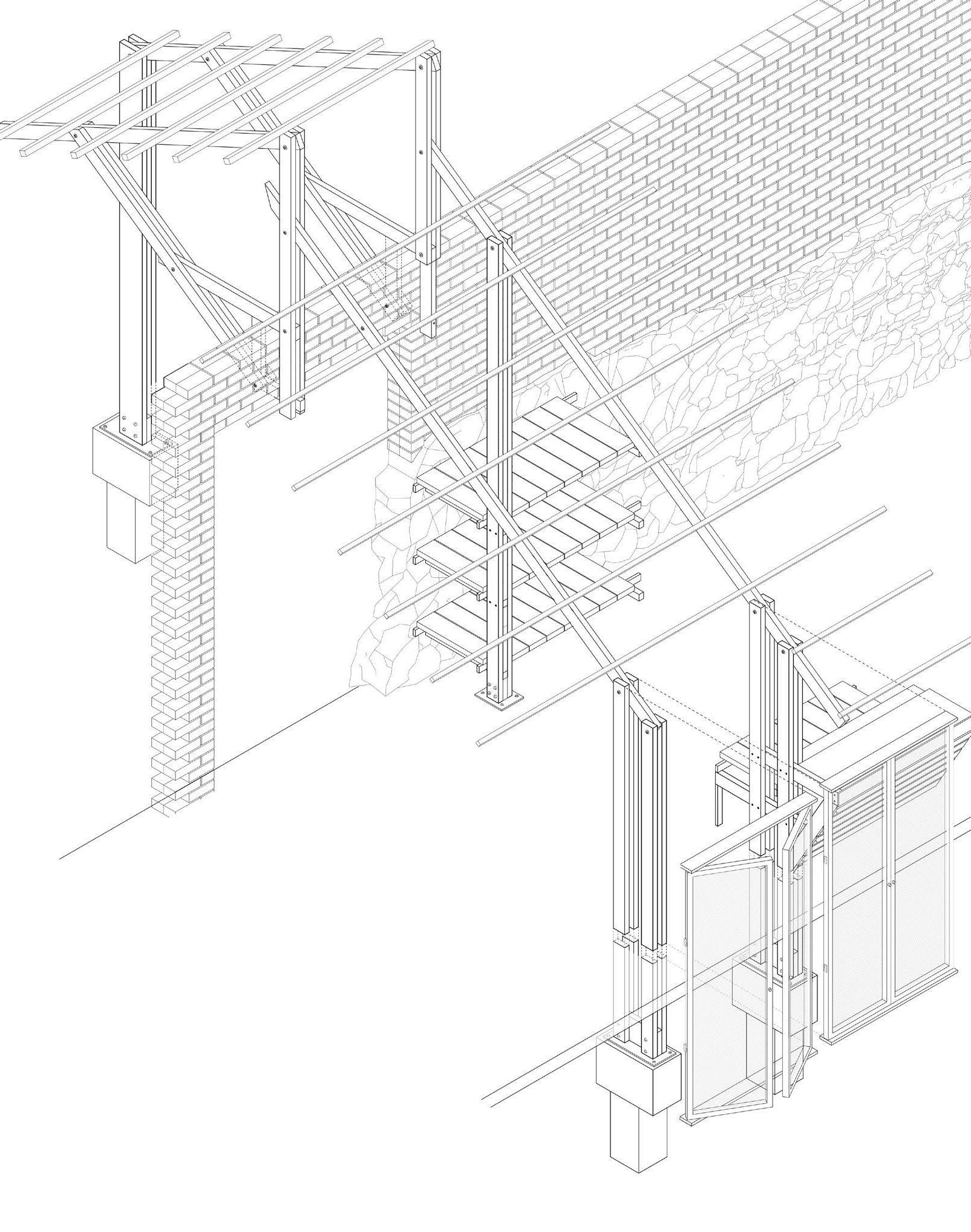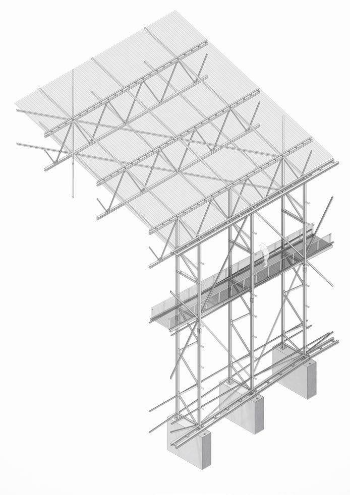 This report examines the material choices, structural assemblage, and construction in realizing Carmody Groarke’s Hill House Box, which is a protective structure designed to cover Mackintosh’s Hill House building for conservation work. The logistical theme of Material Technology is explored throughout. The choice of the topic was informed by the authors’ correspondence with the architect and field study, as the logistical negotiations concerning the Hill House’s material have been ongoing from its inception to its current conservation.
