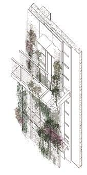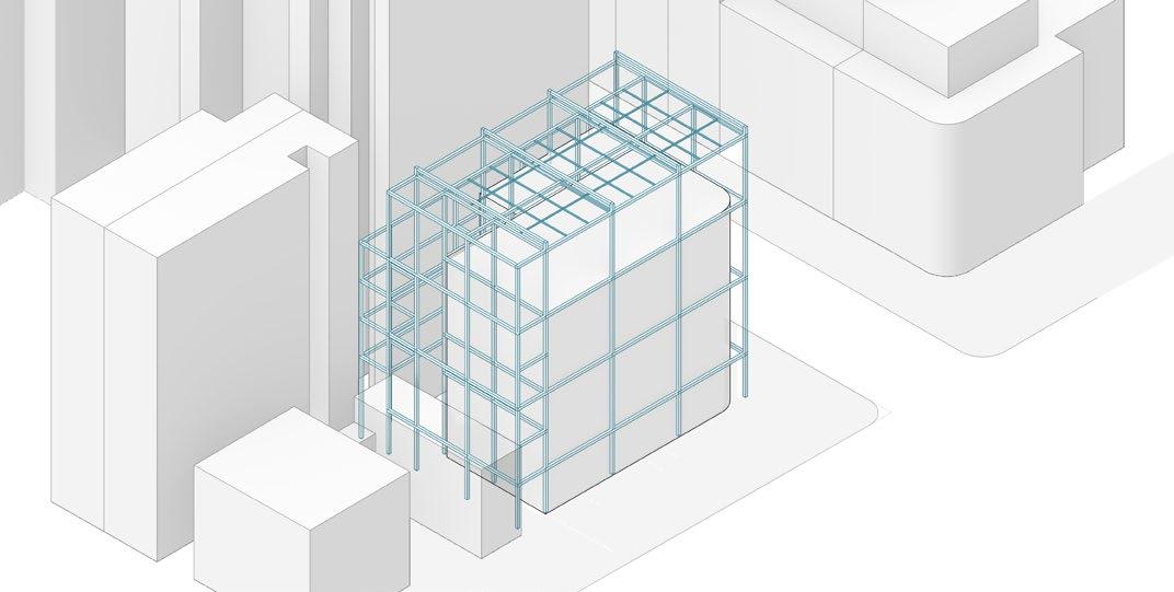 Furthermore, because of the exposed structure, the sunlight will reflect on the facade, telling people the time, direction.
