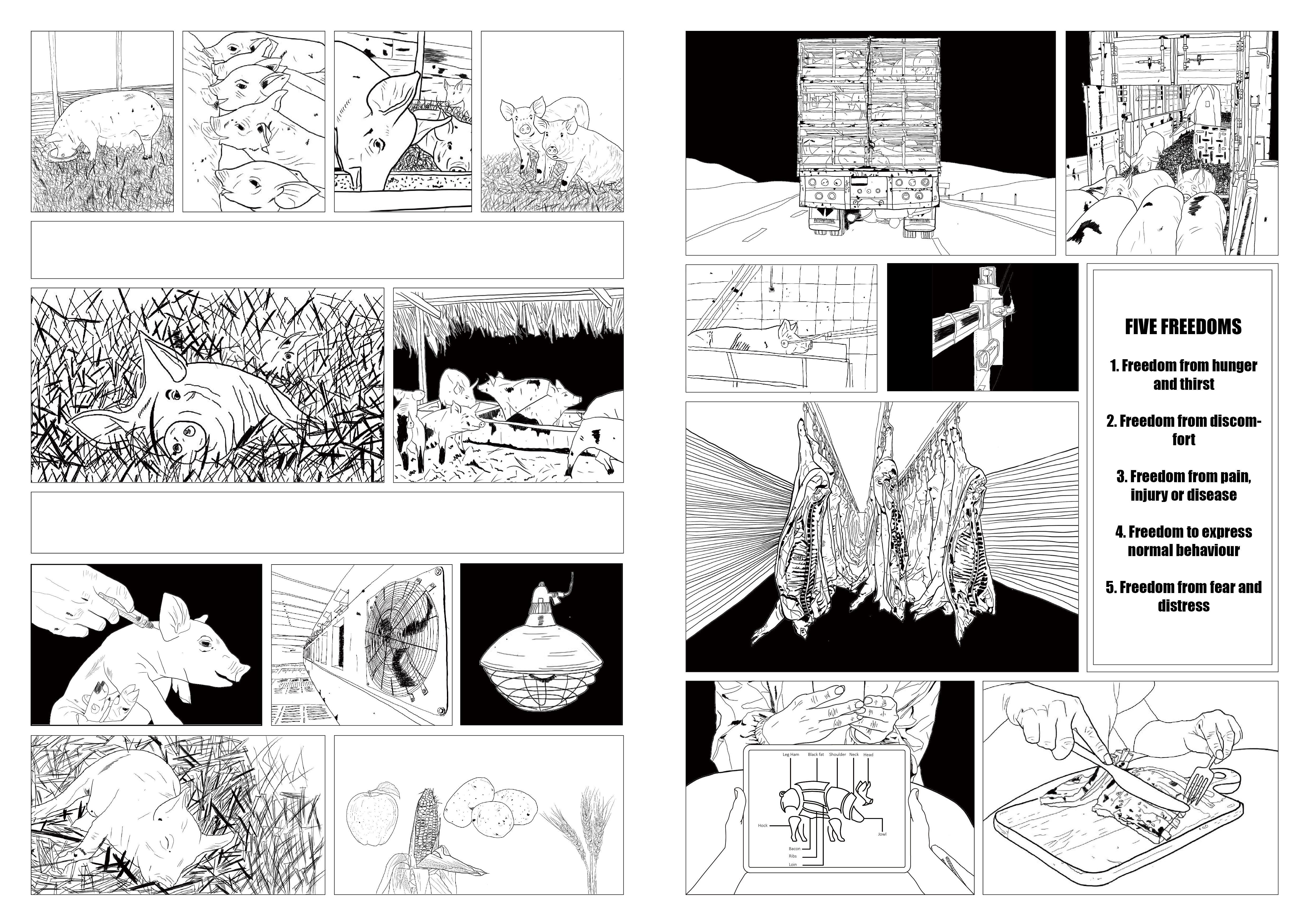 Diagrams show how pigs are slaughtered
