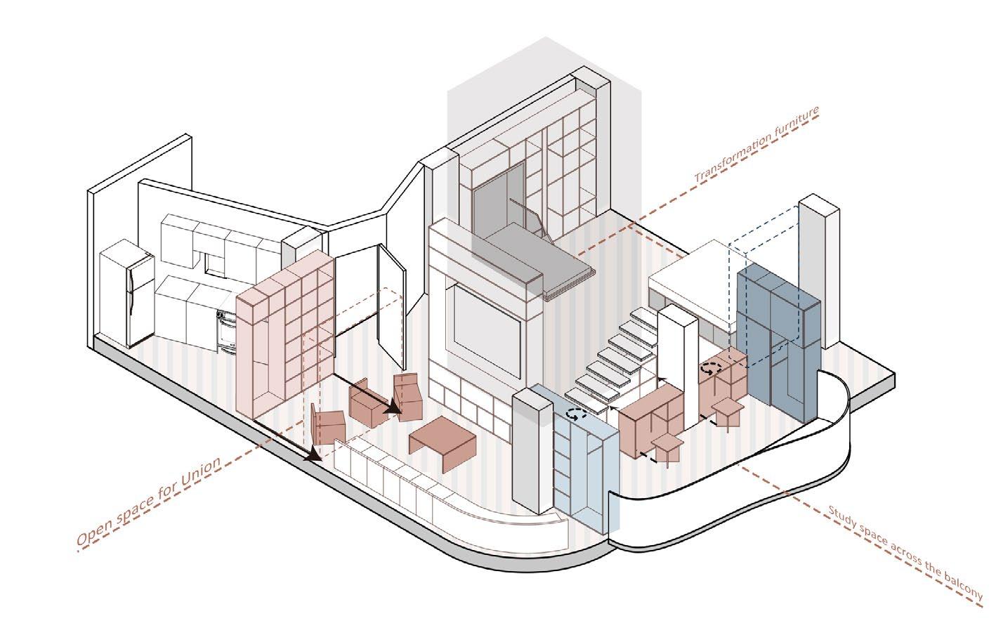 In traditional Hong Kong family structures, several generations live together because of housing pressure. The lock down in Covid-19 intensified family conflicts. And metal issue become prominent. How to do we take care of the mental health of every family member through interior interventions? For example, Psychological problems caused by the stress of working at home, no room for relaxation? Psychological problems caused by teenagers' pressure to study at home, no private space. No place to deal with stress. The old people's psychological problem caused by lonely, other family members are busy with study and work, the issues about generation gap problem, Psychological problems caused by lack of care. Some people need to work from home. How to solve the problem of working from home? Similarly, how to deal with the psychological stress of working from home? How to deal with everyone's personal space at home? How do you provide public space? there is saying that it is no need to change the density of cities in response to the Covid-19. It is important to address the problem on this basis.