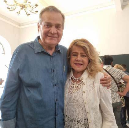 Jacira Leão ao lado do ex-governador Ronaldo Lessa, durante elegante coquetel no Palácio Floriano Peixoto, em Maceió — um encontro marcado por história, charme e boas conversas.