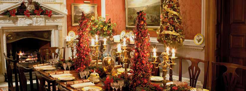 We admire the elegant interiors and personal treasures such as Chippendale chairs and Tudor portraits, illuminated with twinkling decorations and seasonal floral displays at this special time of year, with Christmas crackers hidden in every room.