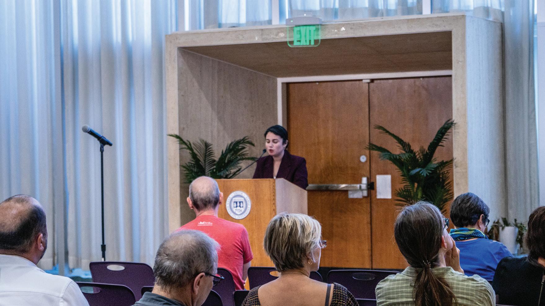 on to discuss claims that these financial problems were inherited by the current administration and questioned why nothing had been done in eight years to reverse them. “I’m sure each of you has sat in your department meetings this week hearing deeply troubling news about the drastic administrative cuts that occurred over the summer and about where we are heading next. More cuts, more service courses, the shutting of graduate programs, loss of R1 status, a hiring freeze, the sunsetting of majors and minors, and so on.” She acknowledged that a change in leadership will not immediately result in resolution of these problems, but if the University makes no changes neither will the course that it is on.