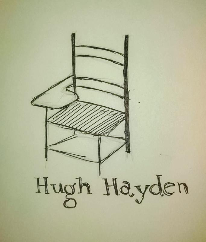Themes in his works that he mentioned multiple times during the interview were anthropomorphic structures and the use of homogenization. This is illustrated in his work “American Gothic.” This piece is one of the most anthropological in the sense of form. It emulates the original Grant Wood piece in that it contains two figures. However, these two figures in Hayden’s creation are headless skeletons. They are made from wood but also contain farmhand and cleaning objects such as a pitchfork and shovel or a mop and duster to represent the hands or feet on the skeletons. Several aspects of this piece stand out. Hayden mentions that there is a sense of anonymity regarding skeletons, especially if you are unfamiliar. “You do not get a sense of race or class based on a skeleton,” Hayden explained. He centered the conversation around labor, domesticity and pure existence. This piece speaks volumes through its various interpretations.