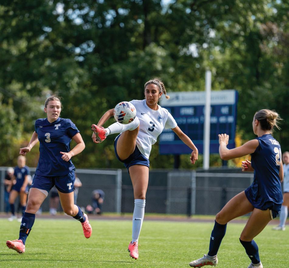 The Bantams scored early in the 10th minute, but the Judges rallied, outshooting Trinity 17-5 before finally scoring in the second half. Senior Rachel Watler ’25 saved the day, leading the Judges to victory with a pair of goals late in the game just over three minutes apart, the first assisted by Peterly Leroy ’28.