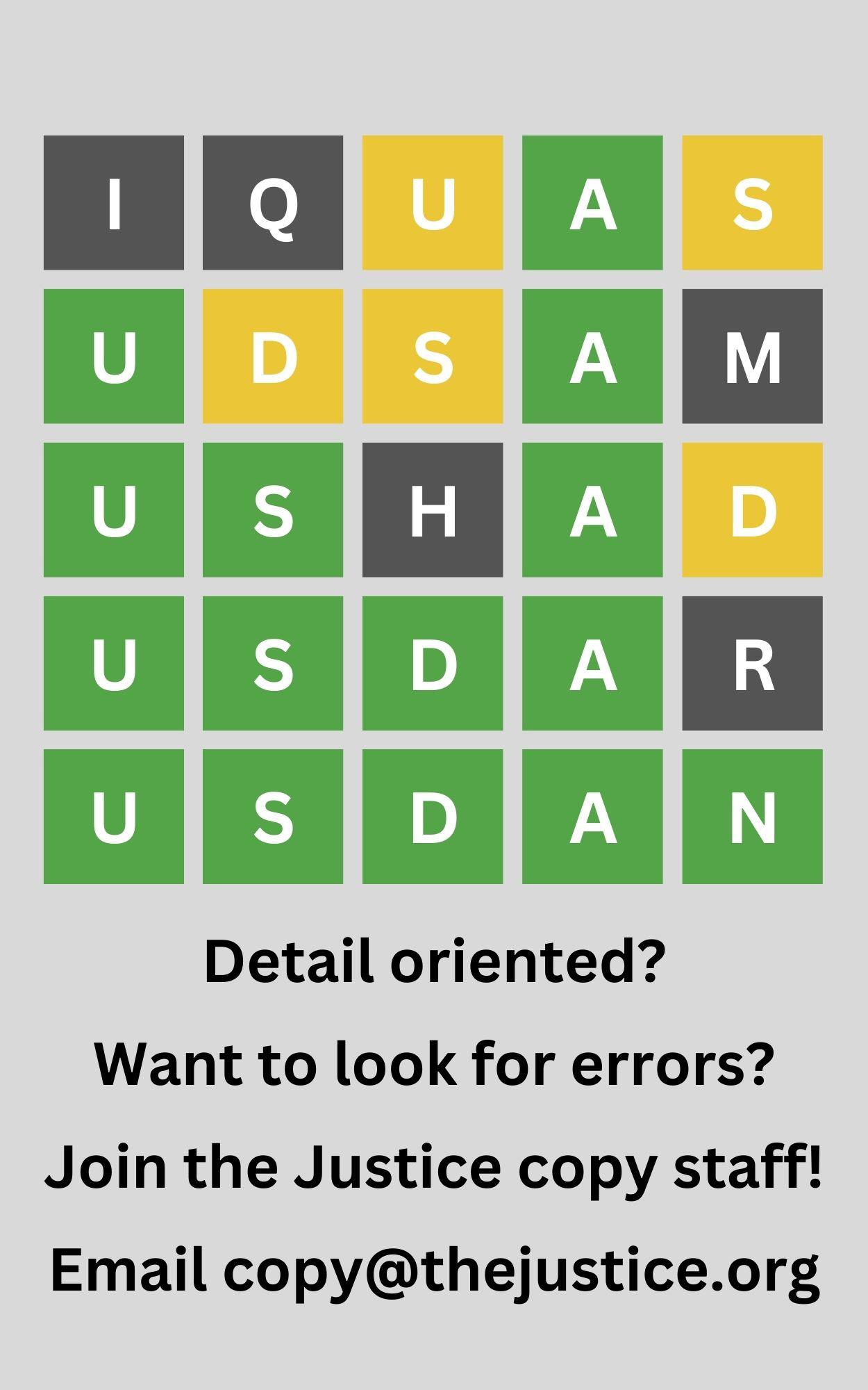 The Justice welcomes submissions for errors that warrant correction or clarification. Send an email to editor@thejustice.org.