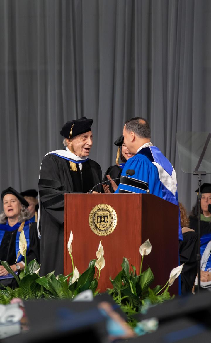 “[The community] will be watching with great and abiding interest as you engage the world with the same curiosity and care for others you displayed while on campus. You are Brandeisians which means you follow in the footsteps of so many who have made a difference in our world.”