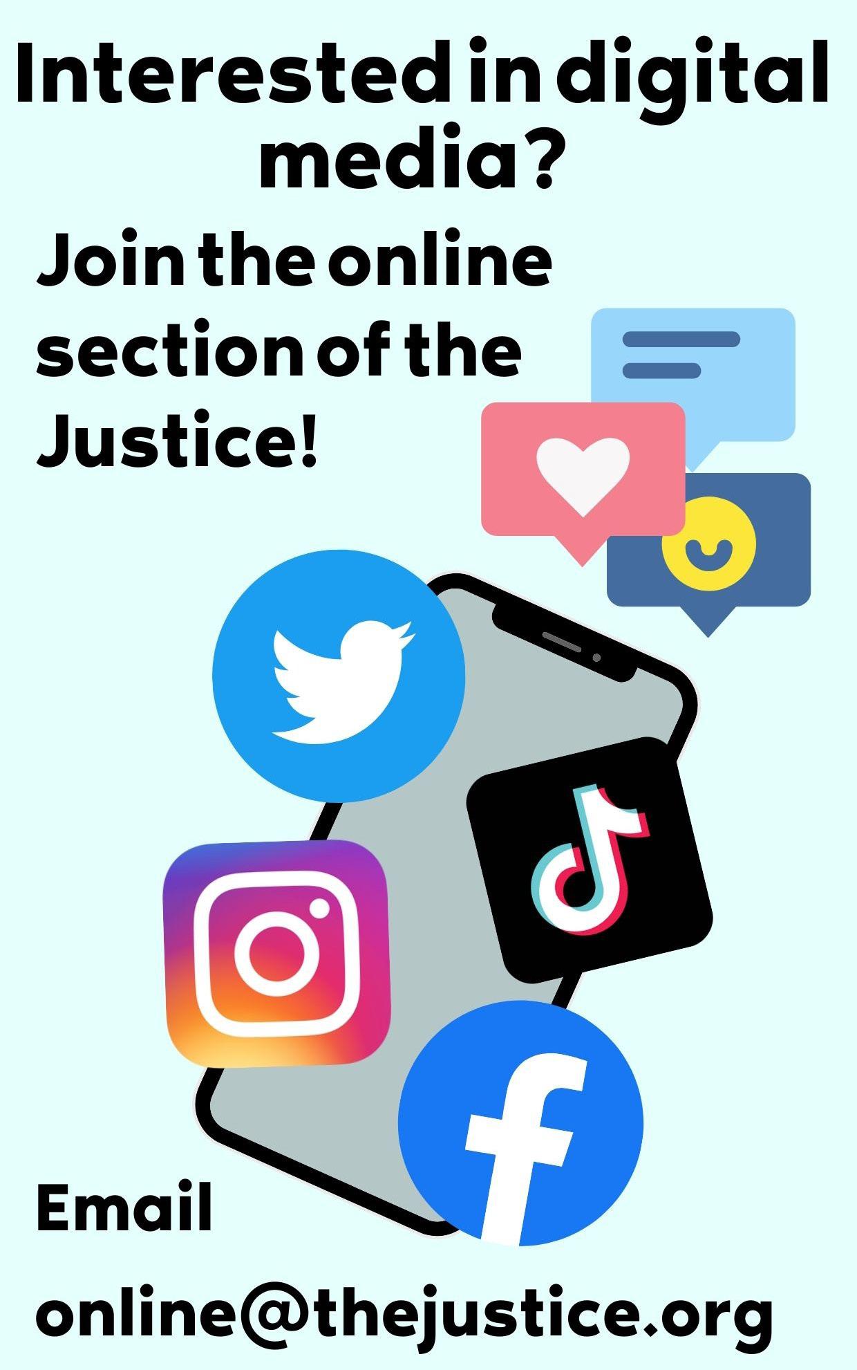 editor@thejustice.org managing@thejustice.org news@thejustice.org features@thejustice.org forum@thejustice.org sports@thejustice.org arts@thejustice.org photos@thejustice.org copy@thejustice.org layout@thejustice.org ads@thejustice.org online@thejustice.org