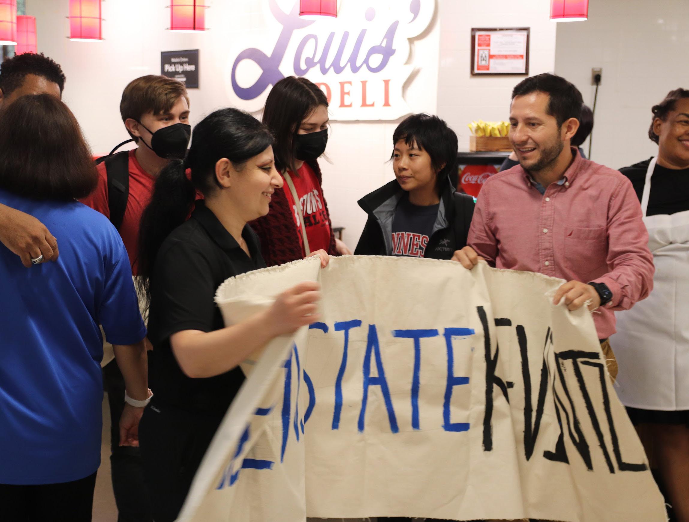■ The police were called on Brandeis Leftist Union members who were protesting, alongside a dozen dining workers, the abrupt firing of Kevintz Merisier.