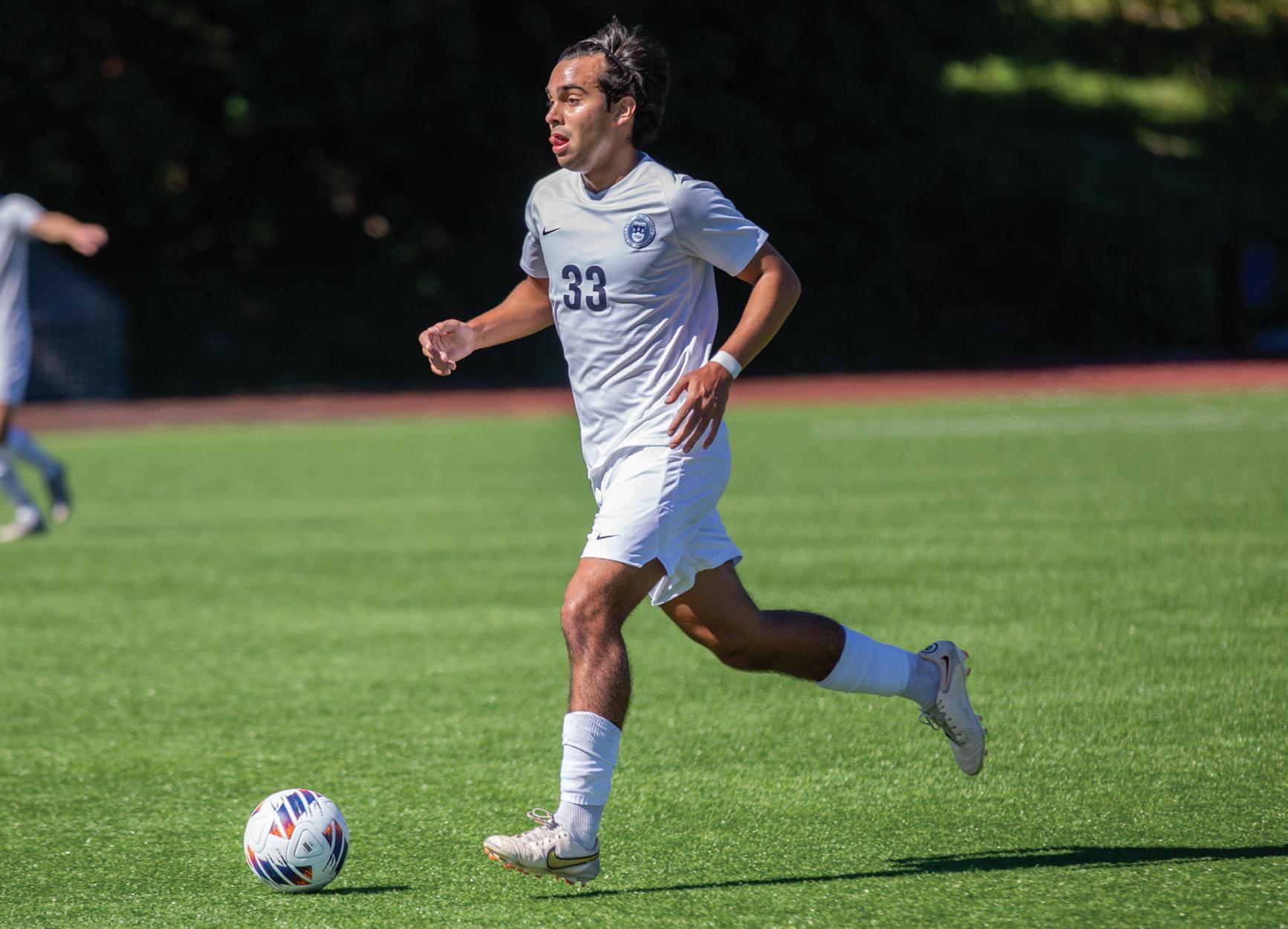 MOVING FORWARD: Andres Gonzalez ’25 strides forward during a match at home on Sept. 24 against Eastern Nazarene.