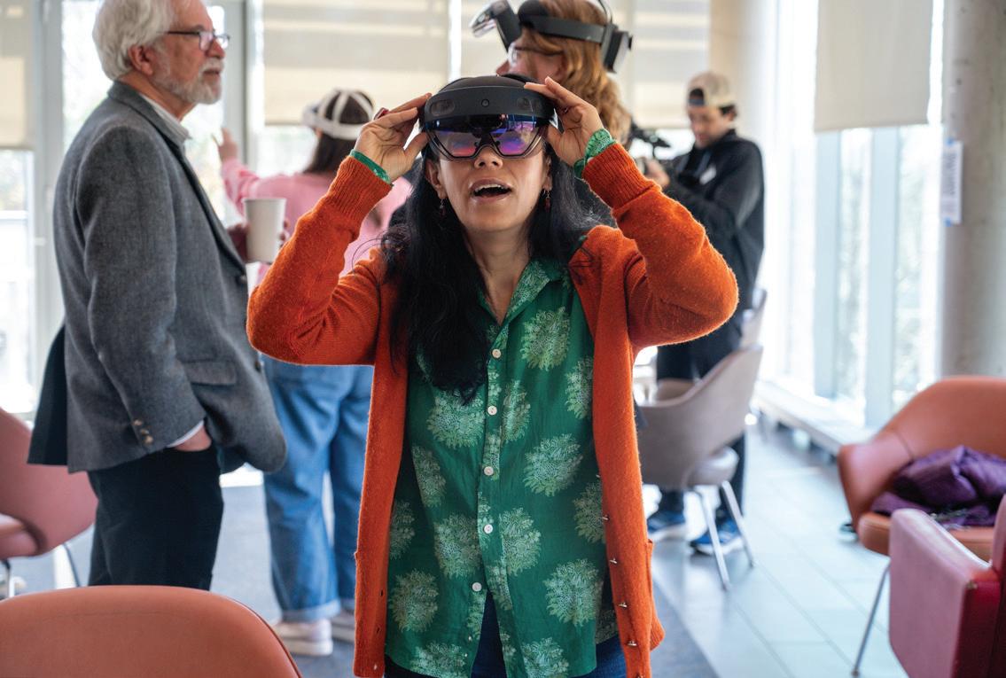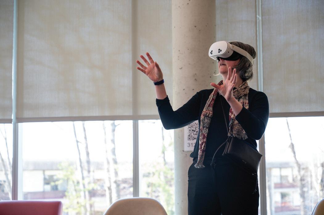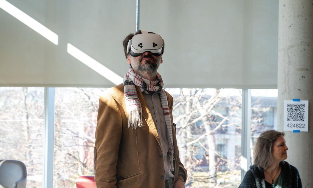 Building on her spring 2025 semester class, the course associated with this ongoing experiment this semester is “Holy Christian Threads! The History and Craft of Making Early Christian Clothing.” In this six-credit course, students learned how to process wool, spin it and weave textiles from that, in a similar fashion to how monks did. In addition, students conducted research on undisplayed textiles at the MFA, facilitated by Dr. Williams. Through a combination of processing wool, weaving and research at the MFA, students 3D scanned the textiles and drop spindles they created to be displayed in CrewXR. Following the conclusion of the panel, attendees were invited to experience the monastic cell populated by Brandeis students and interact with the digital assets in these AR rooms.