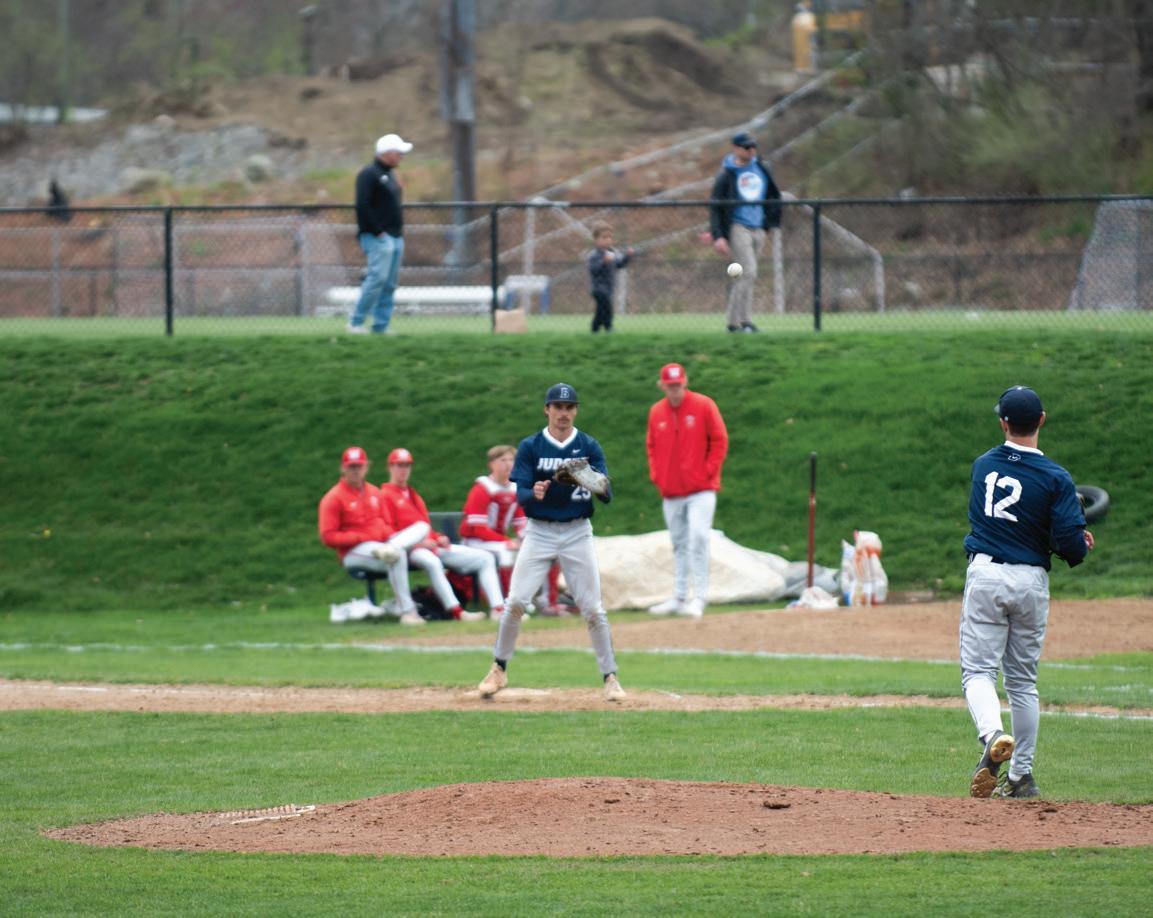 On April 18, Brandeis Baseball celebrated their senior player on the home baseball field. Brandeis hosted Washington University at St. Louis for a doubleheader as part of their University Athletic Association Conference games. Cooper Gavin '26 pitched to commemorate his final season.