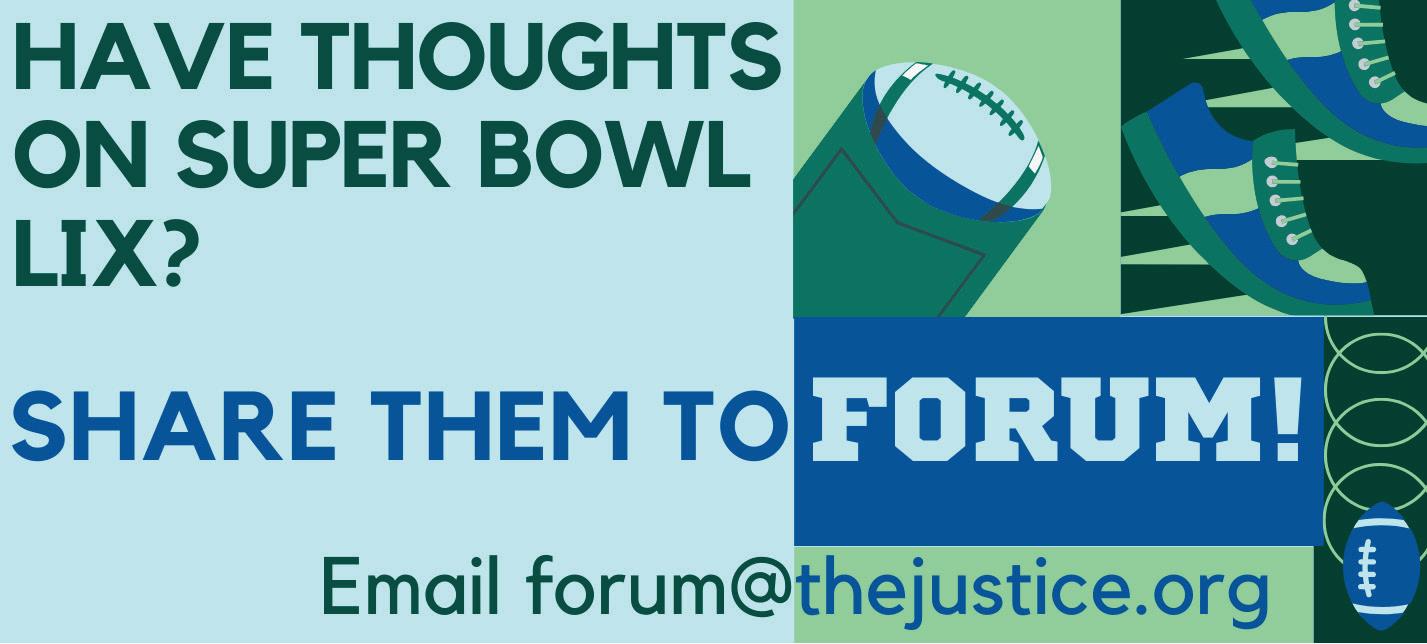 The Justice Staff Writer Ezekiel Bloom '27 highlights Sunday's Superbowl between the Philidelphia Eagles and the Kansas City Chiefs, p. 12.