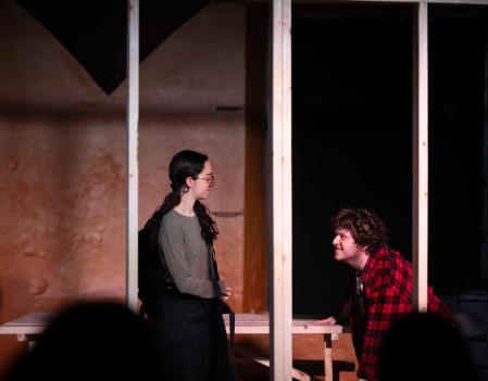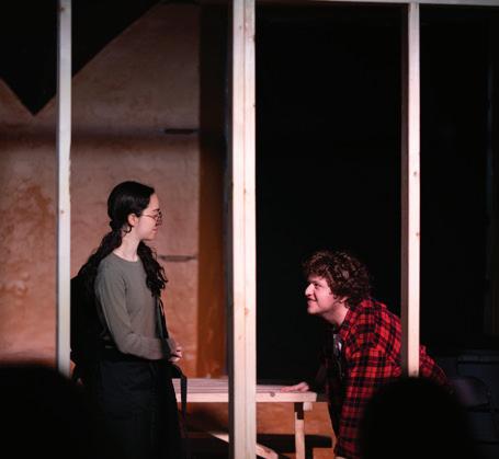 Shavit’s nervousness while playing Evan also contrasts effectively characters Jasper and KJ, played by Triona Suiter ’27 and Ben Robertson ’26, respectively. Jasper and KJ are friends in their 30s who both clearly share a long and complicated history, having only each other. The dynamics between Suiter and Robertson are engrossing as