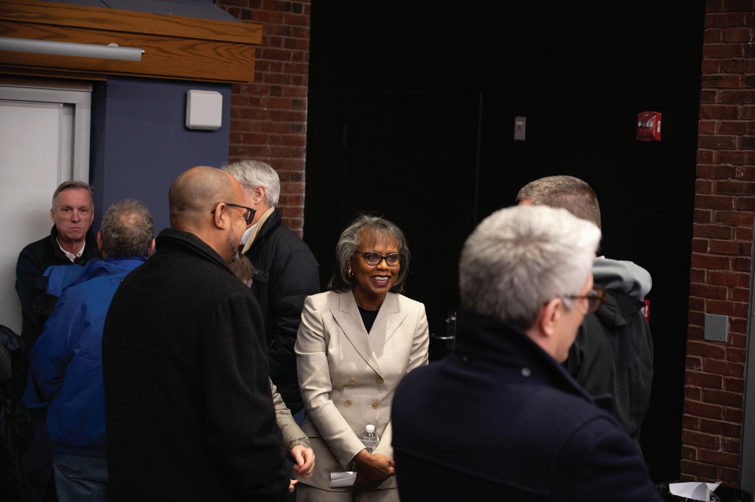 FACULTY : Prof. Hill speaks to attendees after the event concluded.