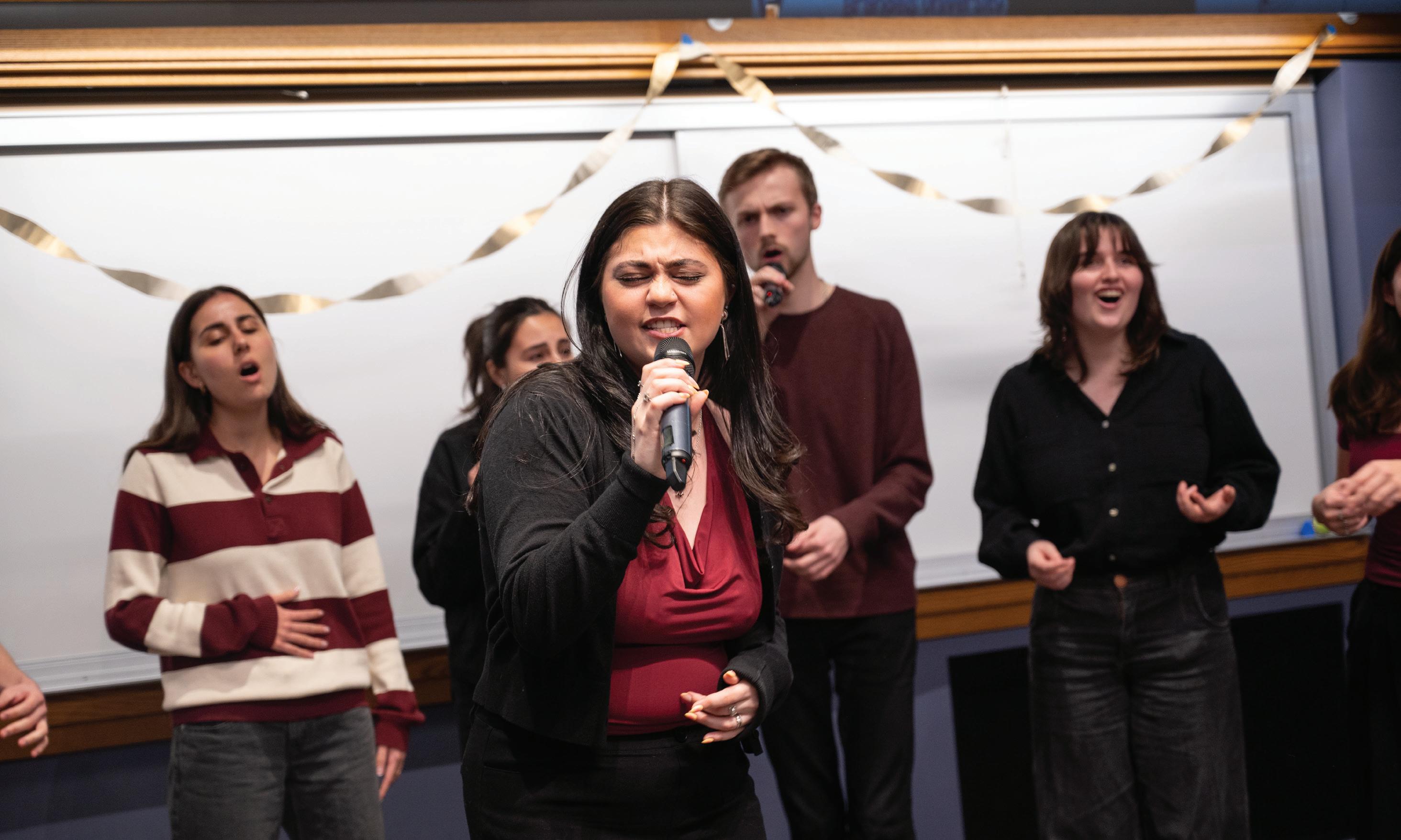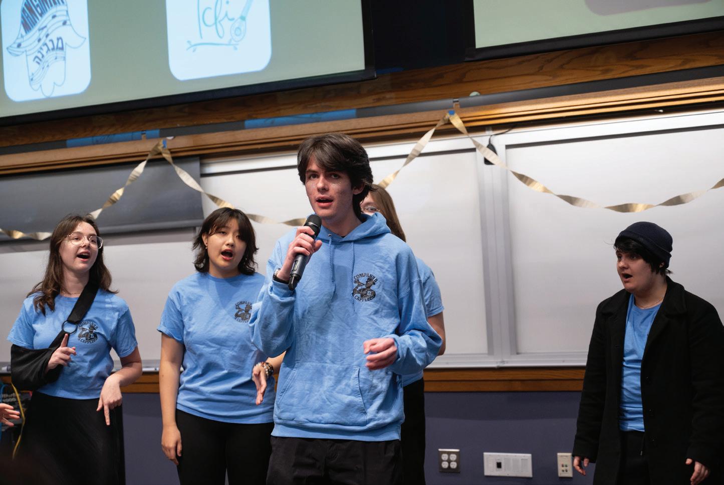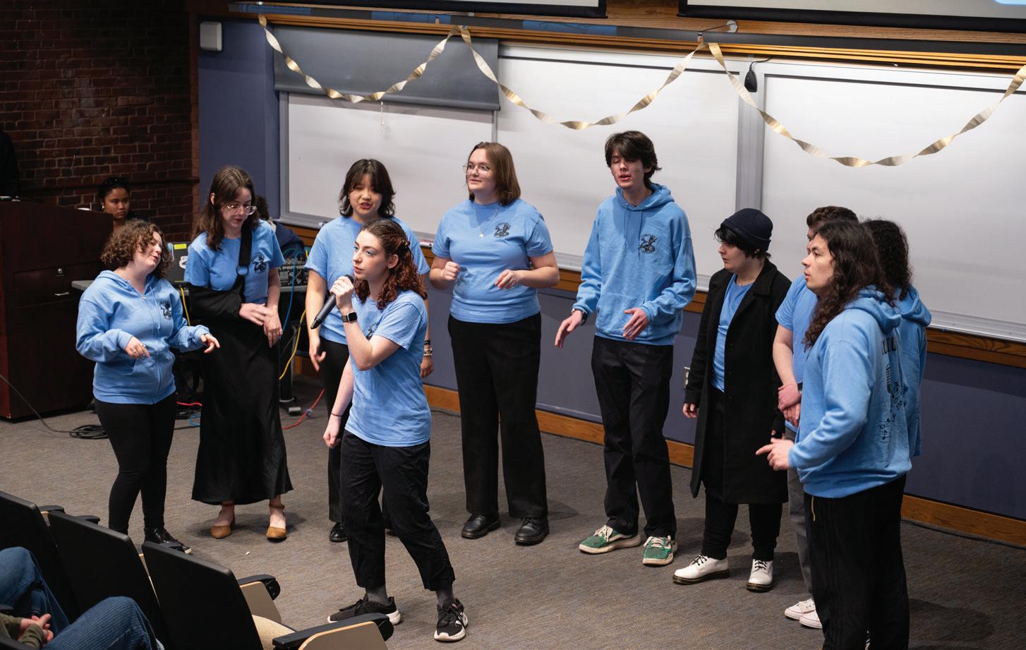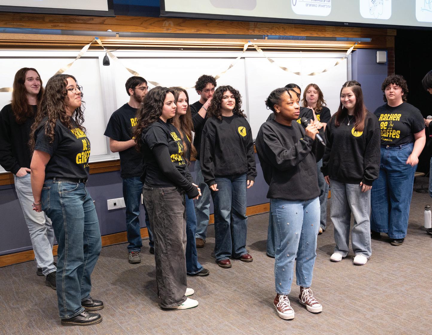 Confino-Miller: I’ve been singing and writing music since I was little, and I’ve always been involved in plays and choirs. My high school didn ’t have an a cappella group, but I was obsessed with “Pitch Perfect”and “Glee” and always dreamed of being part of a close-knit group like that. When I transferred to Brandeis during my junior year, I didn’t know anyone and was really nervous about finding my people. The moment I joined Starving Artists, that completely changed. I instantly felt lik e I had found a second family. Beyond performing, these are the people I spend so much of my time with, and they’ve shaped my entire college experience. A cappella has also allowed me to bring my love for songwriting into arranging for the group, and there’s nothing cooler than hearing chords I wrote in MuseScore come to life through voices. The people in this grou p never let hard work go unseen. When you’re hanging out with friends in an a cappella group, a single word can remind someone of a song, and suddenly we’re all jumping in, making up harmonies on the spot and singing our hearts out, and there’s nothing else like it.