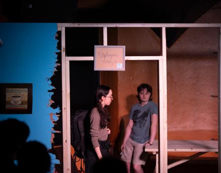 Please enjoy your stay!” before sheepishly looking away. Shavit played Evan, a junior in high school who spends the summer working at The Green Sheep Coffee House and has crippling anxiety. Before the show began, audience members could interact with “Evan” and ask questions or order a hot drink, immersing themselves in the world of The Green Sheep. Shavit played Evan excellently, both in the show and during the preshow and intermission. Her improv with audience members was really fun — several people, including myself, had full conversations with Shavit while she was in character, and she did not break once.