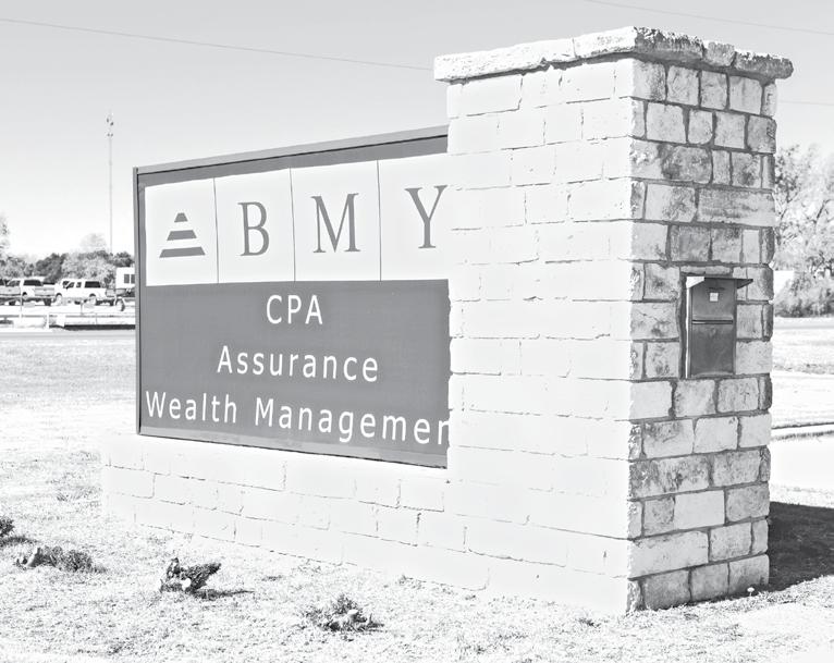CPA • Investments • Consultants BOUCHER, & YOUNG CERTIFIED PUBLIC BMY MANAGEMENT FINANCIAL ADVISORY Making a Difference In Your Financial Granbury • Stephenville • Dublin BMY FINANCIAL CENTERS CPA • Assurance • Wealth Management Making a Difference In Your Financial Future Granbury • Stephenville BMY FINANCIAL CENTERS WWW.BMY-CPA.COM GARY SULT, CPA MELANIE TAYLOR, CPA JEREMY SHELL, CPA KIM KNOX-LEWIS, CPA