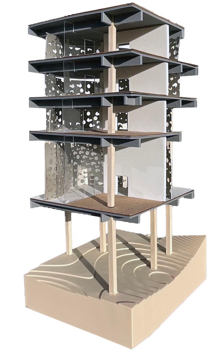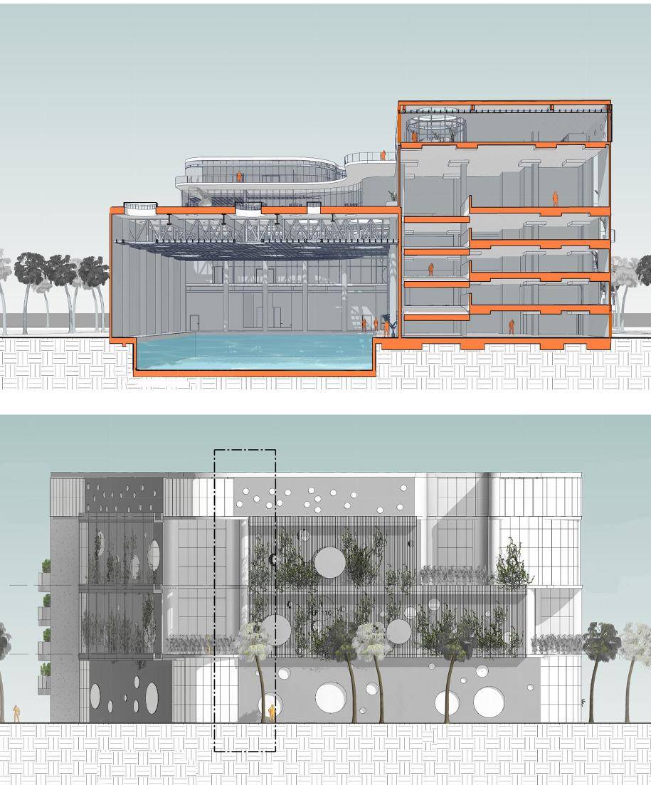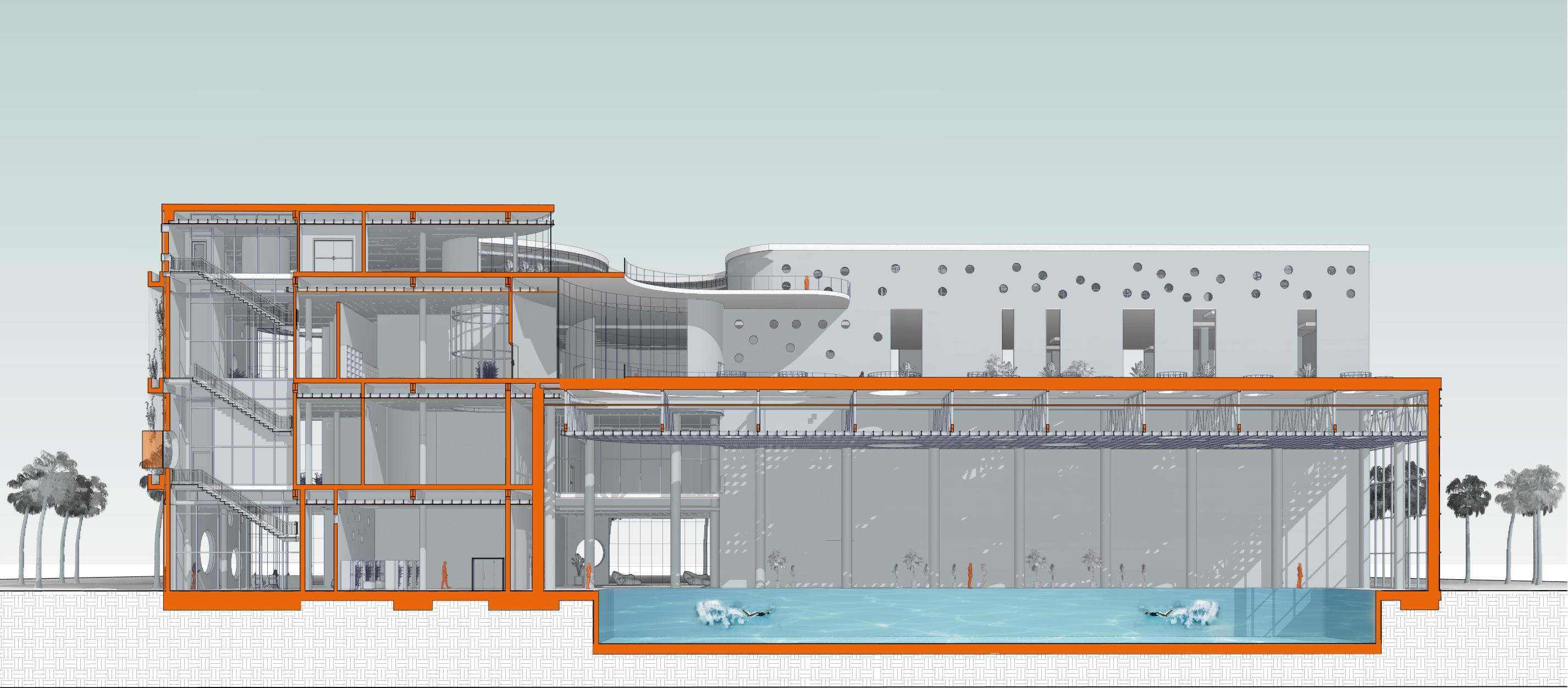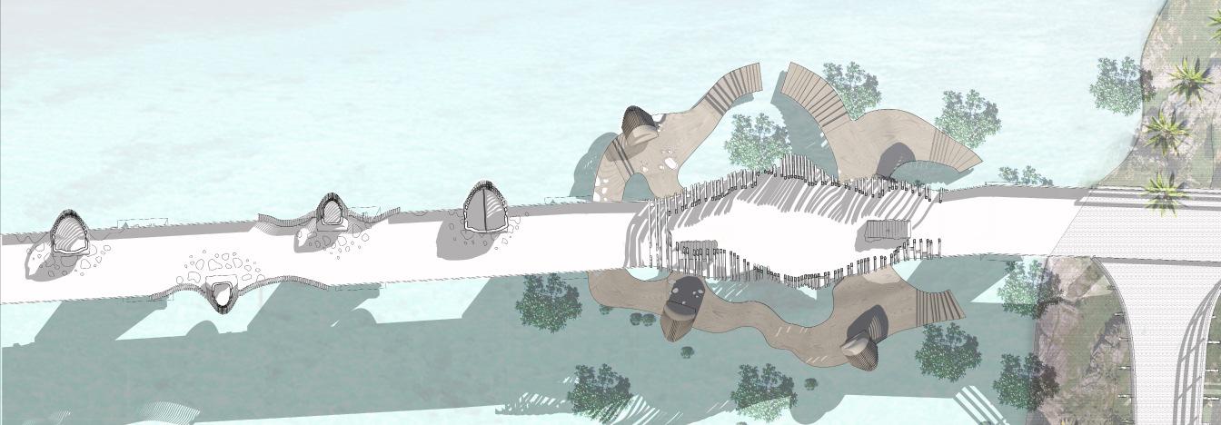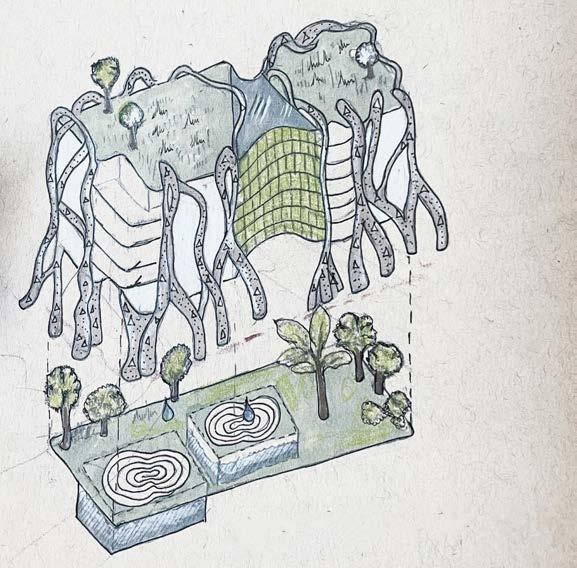 IT CREATES AN OPPORTUNITY TO CONNECT TO THE NATURAL WORLD BY BLENDING ENVIRONMENTAL AWARENESS WITH ARCHITECTURAL INNOVATION. USING BIO-CONCRETE, WOOD, AND STEEL FOR STRUCTURAL SUPPORT, THE FORM IS A TWISTING COVE THAT ROTATES ON ITSELF, TAKING INSPIRATION FROM CORALS AND THE REEF. THE COVE CREATES A SPACE FOR REFLECTION AND FOSTERS A DEEP CONNECTION WITH OCEAN LIFE AND SPECIES. THE INHABITANTS AND VISITORS CAN EXPLORE THE BIODIVERSE MANGROVE AND CORAL ECOSYSTEM THAT ARE HOME TO THOUSANDS OF SPECIES, INCLUDING FISH, AMPHIBIANS, BIRDS, AND INSECTS. THE DIRECT EXPOSURE OF THE VISITORS CONTRIBUTES TO THE IMPORTANCE OF OCEAN LIFE AND ITS WELL-BEING, RAISING THE NEED FOR AWARENESS IN OCEA++N CONSERVATION.