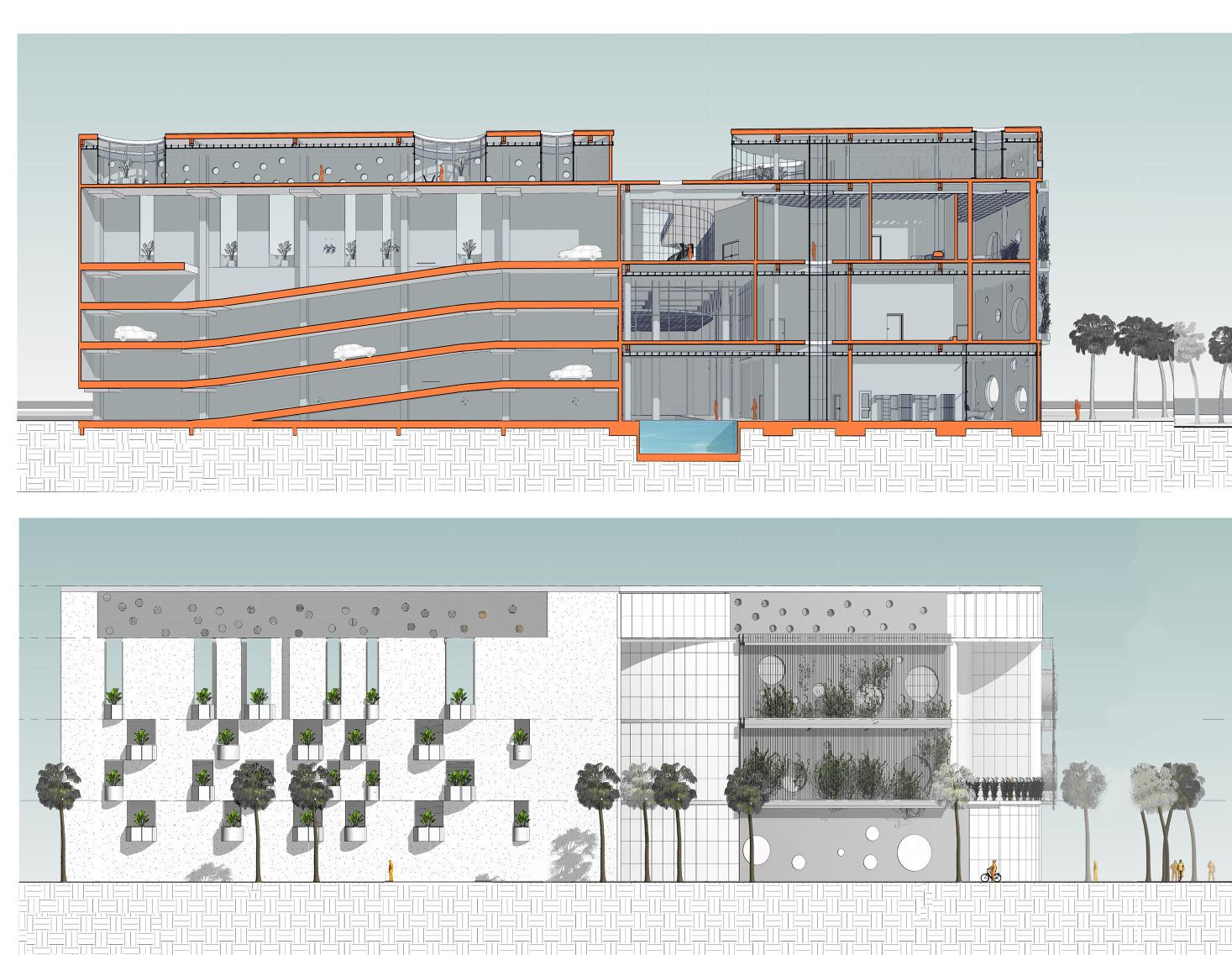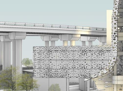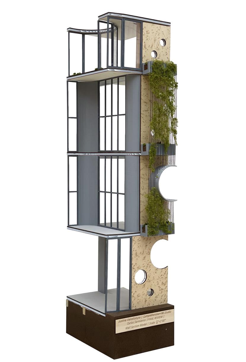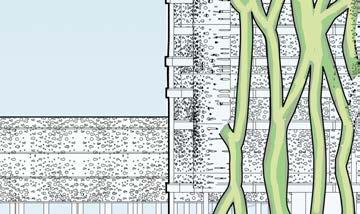 RETROFITTED STRUCTURE – INSPIRED BY ARUP'S BIQ HOUSE, THIS COMPONENT FEATURES A BIO-REACTIVE FACADE THAT GENERATES ENERGY THROUGH PHOTOSYNTHESIS.