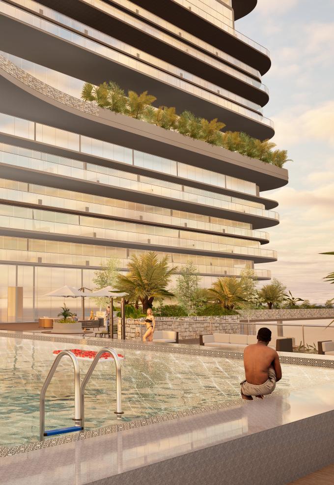 THIS MIXED-USE TOWER EXPLORES HOW LAYERED HORIZONTAL VOLUMES AND INTEGRATED GREEN SPACES CAN CREATE A DYNAMIC RELATIONSHIP WITH THE CITY. BY ALTERNATING TRANSPARENT AND SOLID FAÇADES, THE DESIGN PLAYS WITH VISUAL DEPTH AND OPENNESS, INVITING INTERACTION BETWEEN INDOOR AND OUTDOOR ENVIRONMENTS. TERRACES FILLED WITH GREENERY PROVIDE RESIDENTS AND VISITORS OPPORTUNITIES TO CONNECT WITH NATURE, SOFTENING THE BUILDING'S PRESENCE WITHIN THE URBAN CONTEXT. THE SOLID PODIUM GROUNDS THE TOWER WITH ITS TEXTURED FAÇADE, CONTRASTING THE LIGHTER GLASS VOLUMES ABOVE. OVERALL, THE PROJECT THOUGHTFULLY BALANCES ARCHITECTURAL COMPLEXITY WITH A SENSE OF COMMUNITY AND ENVIRONMENTAL SENSITIVITY.