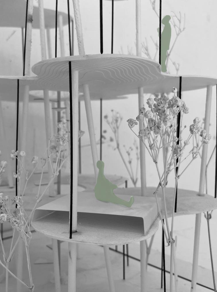 THIS PROJECT THOUGHTFULLY INCORPORATES OPEN AREAS AND SECLUDED SPACES, INVITING USERS TO IMMERSE THEMSELVES FULLY WITH NATURAL ELEMENTS SUCH AS THE EXPANSIVE SKY AND VERDANT GREEN TERRACES. THESE FEATURES EVOKE AN OUTDOOR WILDERNESS AMBIANCE, ALLOWING MOMENTS OF ESCAPE AND TRANQUILITY IN AN URBAN ENVIRONMENT, WHERE NATURE AND ARCHITECTURE SEAMLESSLY COEXIST.