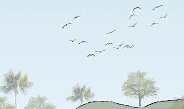 THE PROJECT’S TECTONICS ARE SHAPED BY A DESIGN GENERATOR INFORMED BY SITE-SPECIFIC DATA, INCLUDING HYDROLOGY, FLOOD PATTERNS, WEATHER, AND UV EXPOSURE. THIS GENERATOR SERVES AS AN ESSENTIAL GUIDE, DIRECTING THE DESIGN PROCESS. THE PARK ITSELF BECOMES A SUBTRACTIVE ELEMENT, CARVING OUT COOL, SHADED SPACES THAT OFFER RELIEF FROM MIAMI’S TROPICAL HEAT WHILE CREATING AN IMMERSIVE, MYSTERIOUS EXPERIENCE. AS VISITORS JOURNEY THROUGH THE PROJECT, EACH VIEW IS CAREFULLY FRAMED, GUIDING THEM FROM GROUND LEVEL DOWN TO A DEPTH OF 12 FEET, UNVEILING A SEQUENCE OF SPACES THAT REVEAL THE LANDSCAPE’S HIDDEN NARRATIVES.